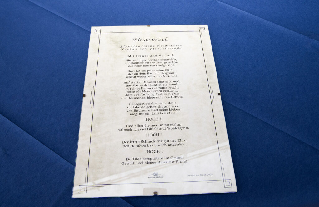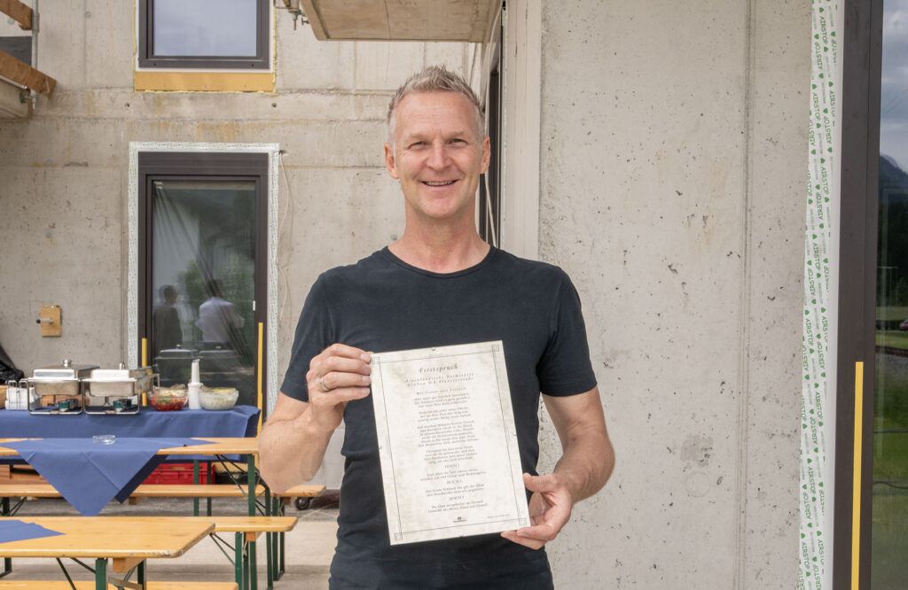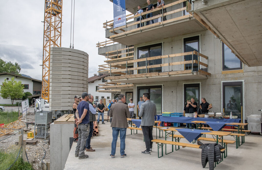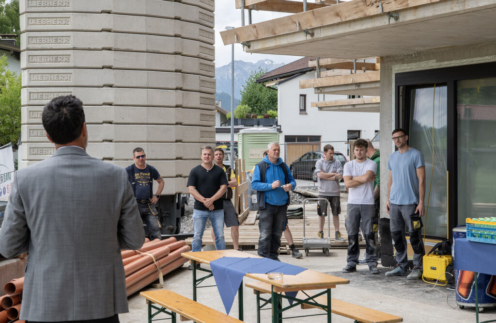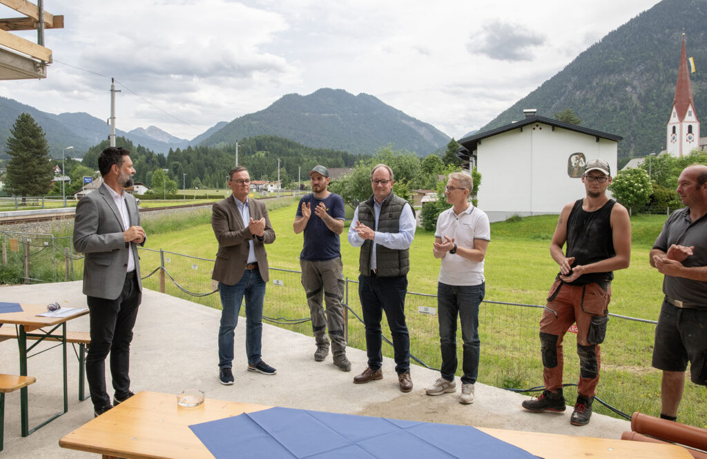 Bürgermeister-Stellvertreter Klaus Schimana freute sich im Rahmen der Feierlichkeiten über den erfreulichen Baufortschritt: “Wir haben den Baubescheid einst als Marktgemeinde erlassen und nun können wir als Stadtgemeinde Reutte die Firstfeier dieses schönen und wichtigen Wohnbauprojekts in Zentrumsnähe begehen – das ist wohl etwas ganz Besonderes! Ich wünsche allen Projektbeteiligten weiterhin einen erfolgreichen Baufortschritt und freue mich auf die feierliche Übergabe im kommenden Frühling.“