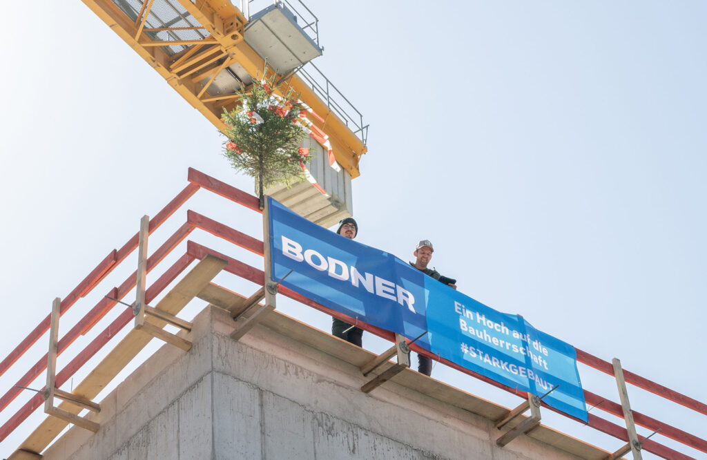 Bürgermeister Martin Wegscheider kommentierte den erfreulichen Baufortschritt mit den Worten: „Besonders freut mich, dass wir mit diesem schönen Projekt endlich der Kinderbetreuung in der Gemeinde die ihr gebührenden Räumlichkeiten zur Verfügung stellen können. Allen Beteiligten und besonders der Alpenländischen möchte ich für die sehr professionelle und unkomplizierte Art und Weise der Zusammenarbeit danken.“