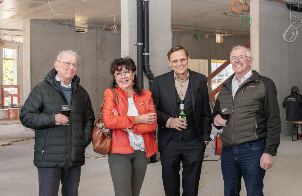 Alle Anwesenden freuten sich über die gut voranschreitenden Arbeiten, die bisher problemlos über die Bühne gegangen sind und brachten ihre Dankbarkeit gegenüber den ausführenden Firmen für deren professionelle Arbeit zum Ausdruck. Das Projekt wird auch dank seiner qualitätsvollen Architektur aus der Feder der ARGE DIN A4 Architektur ZT GmbH & Architekturstube ein Blickfang im Ort werden. Das architektonische Konzept basiert auf einer möglichst sensiblen und harmonischen Eingliederung der Kubatur in die Umgebung. Dabei wird auf die Bestandsnutzungen und die umgebenden Bebauungen geachtet und versucht, die Beeinflussung möglichst gering zu halten.