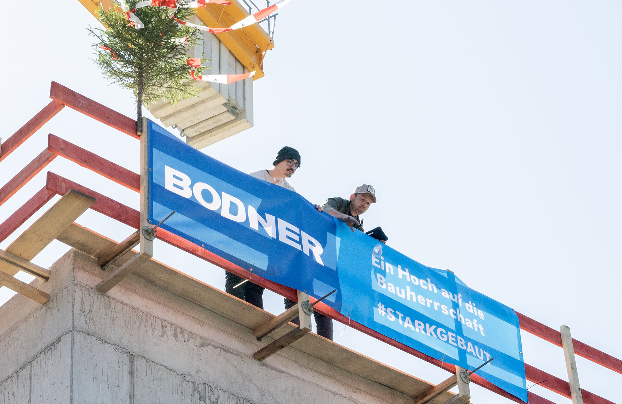 Bürgermeister Martin Wegscheider kommentierte den erfreulichen Baufortschritt mit den Worten: „Besonders freut mich, dass wir mit diesem schönen Projekt endlich der Kinderbetreuung in der Gemeinde die ihr gebührenden Räumlichkeiten zur Verfügung stellen können. Allen Beteiligten und besonders der Alpenländischen möchte ich für die sehr professionelle und unkomplizierte Art und Weise der Zusammenarbeit danken.“