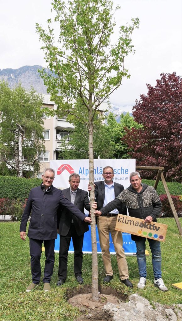 Die Sanierung erforderte laut DI Markus Lechleitner, GF der Alpenländischen, eine intensive Planung. Eine große Herausforderung bestand auch darin, dass alle Wohnungen während der Arbeiten bewohnt waren. DI Markus Lechleitner bedankte sich anlässlich der Feier bei allen für die gute Zusammenarbeit, die zum erfolgreichen Abschluss des Vorhabens führte. Allen voran bei der Gemeinde Völs, den ausführenden Firmen und den Bewohnern. Diese Art der nachhaltigen Sanierung war nur möglich, weil die Förderungsmöglichkeiten sowohl auf Landes- als auch auf Bundesebene optimal ausgenutzt wurden. Mit dem Projekt hat die Wohnbaugesellschaft beispielhaft aufgezeigt, welch großes Einsparungspotenzial in der energetischen Renovierung liegt. Mit dem erreichten Gütesiegel erfüllt das Gebäude aus heutiger Sicht bereits die Anforderungen der nahen Zukunft und bietet seinen Bewohnern klimafreundliches, ökologisches und behagliches Wohnen. Als symbolisches Zeichen für die nachhaltigen Schritte in die Zukunft wurde anlässlich der Feier gemeinsam ein Baum gepflanzt.