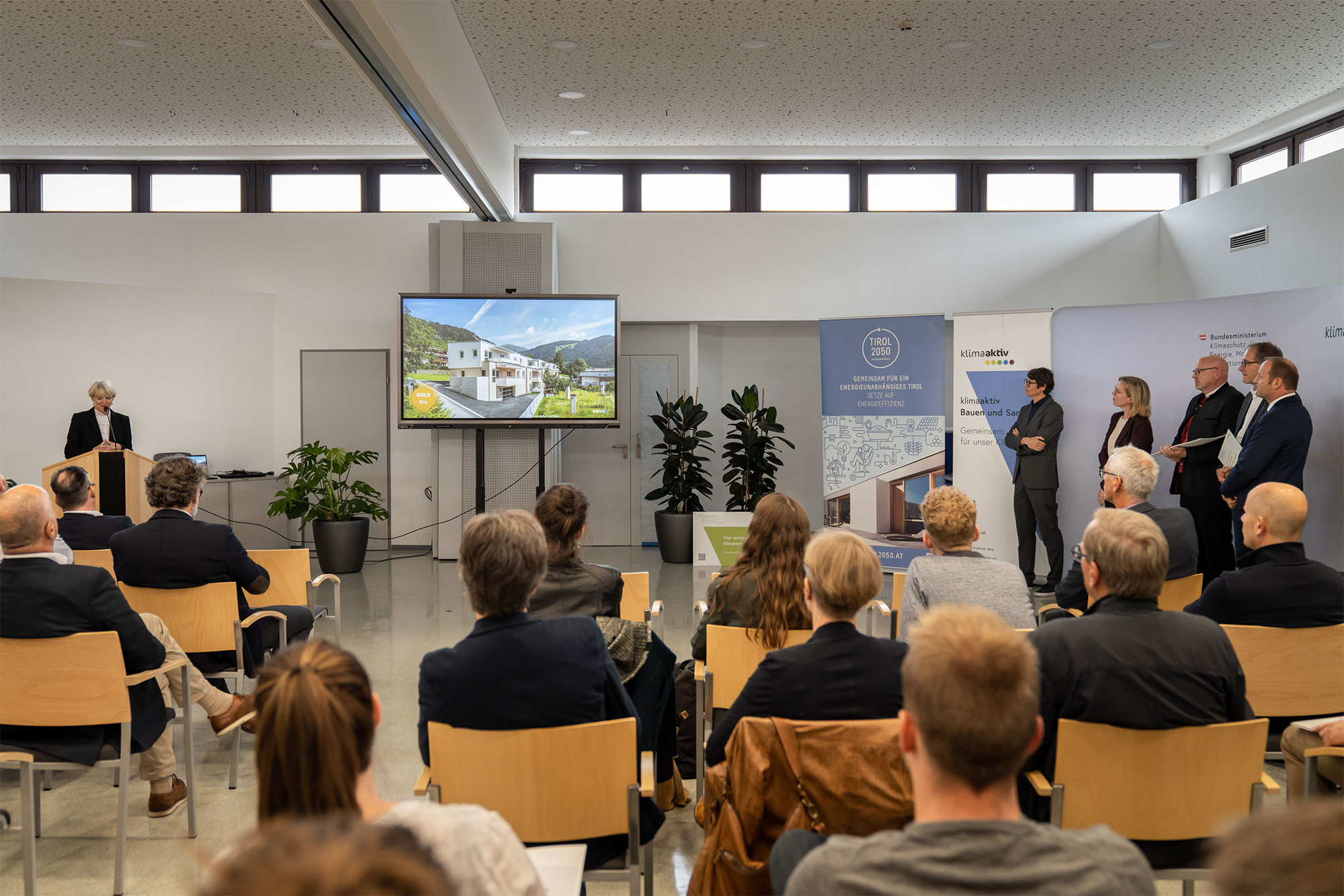 Bei der Verleihung der klimaaktiv-Auszeichnungen im Sommer 2021 wurden in Anwesenheit von Frau Bundesministerin Leonore Gewessler zahlreiche Projekte der gemeinnützigen WohnbauGmbH geehrt. Die Alpenländische bleibt Spitzenreiter im österreichischen Vergleich.