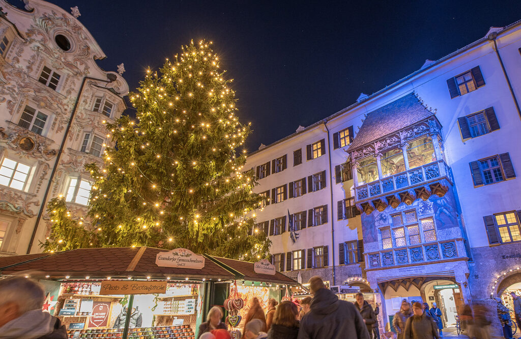Heuer durften wir einen besonders schönen Beitrag zur Weihnachtsstimmung leisten und zwar in Form einer wunderschön gewachsenen Fichte als Christbaum vor dem Goldenen Dachl in der Innsbrucker Altstadt.