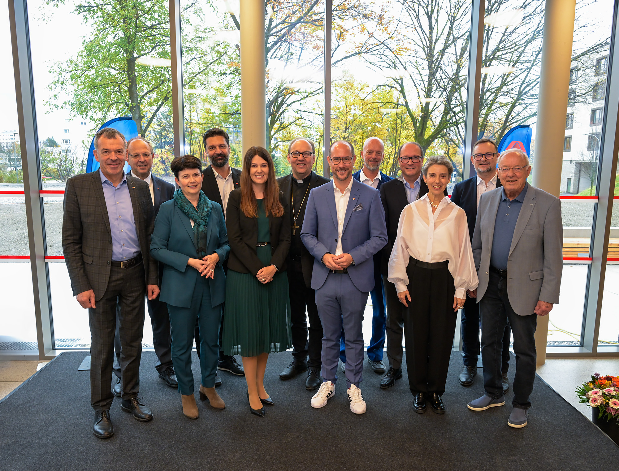 Gruppenfoto – v.l.n.r.: Bürgermeister Georg Willi, Mag. Otto Flatscher, Direktorin Mag. Elisabeth Rathgeb, GF Ing. Alexander Zlotek und GF Mag. (FH) Cornelia Springer (Alpenländische), Bischof MMag. Hermann Glettler, Landesrat Mario Gerber, Arch. DI Jörg Schneider (beaufort Architekten), Ing. Mag. Thomas Bodner (GU), Hausleiterin Petra Knoflach, Mag. Dr. Rainer Kirchmair und AR-Vorsitzender Hofrat Dkfm. Heinz Öhler