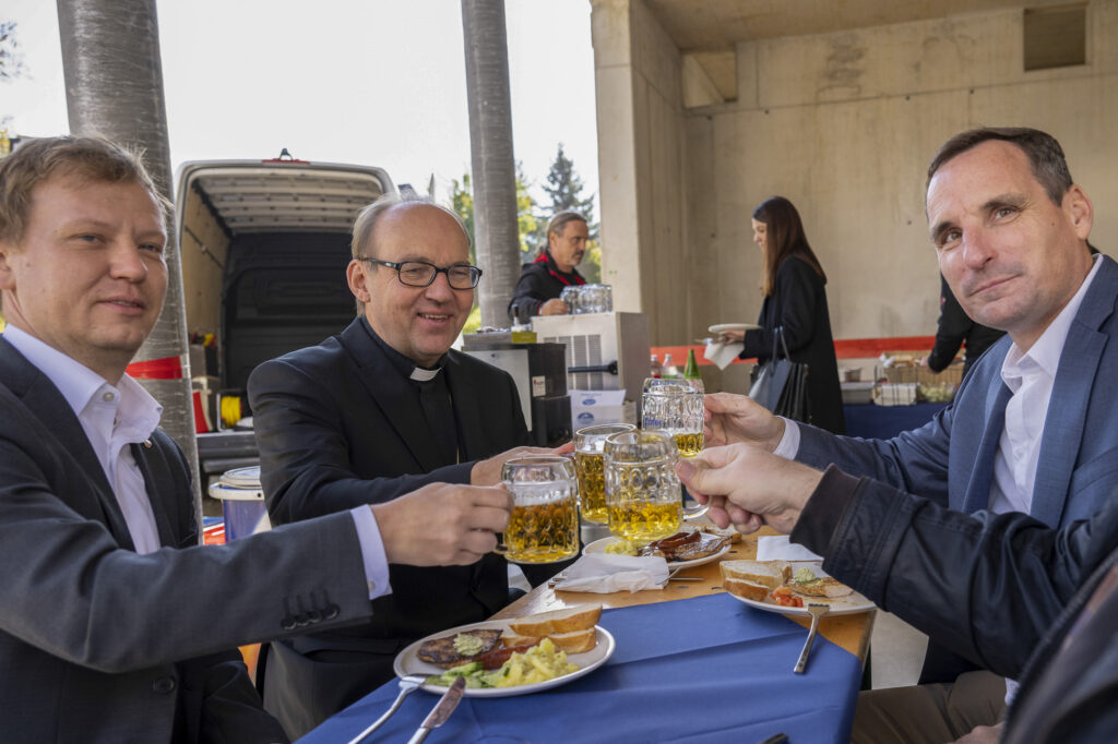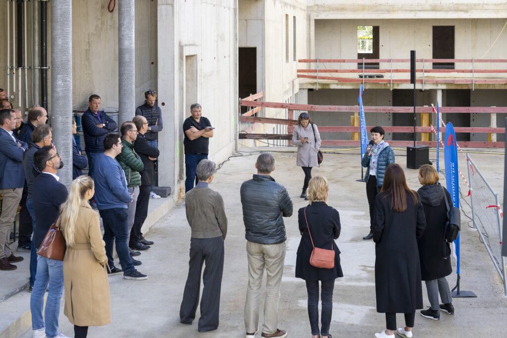 Bei der Firstfeier waren zahlreiche Projektpartner, Vertreter der beteiligten Firmen und Arbeiter vor Ort. Als Generalunternehmer zeichnet sich die Ing. Hans Bodner Bau GmbH & Co KG verantwortlich, die Planung erfolgt durch die beaufort Architekten ZT GmbH.