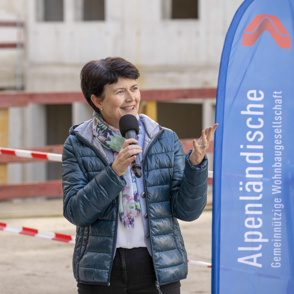 „Mich freut, dass bei der heutigen Firstfeier bereits die Vision dieses innovativen Wohnprojektes sichtbar wird: Das Miteinander wird großgeschrieben. Hier werden Menschen zusammenwohnen, lernen und feiern können. 21 Krisenwohnungen für Menschen in sozialer Not, 30 Kinder, die täglich im Lerncafé Hilfe bekommen, Demenzberatung für Angehörige, Erziehungsberatung für Familien und ein großer Veranstaltungssaal, der ein Stadtteilzentrum für alle werden soll – all das und noch viel mehr findet hier einen Platz. Diese bunte Mischung ist einzigartig und eine große Chance für das Miteinander. Danke an die Alpenländische und alle Beteiligten für ihren Einsatz für diese gemeinsame Vision!“