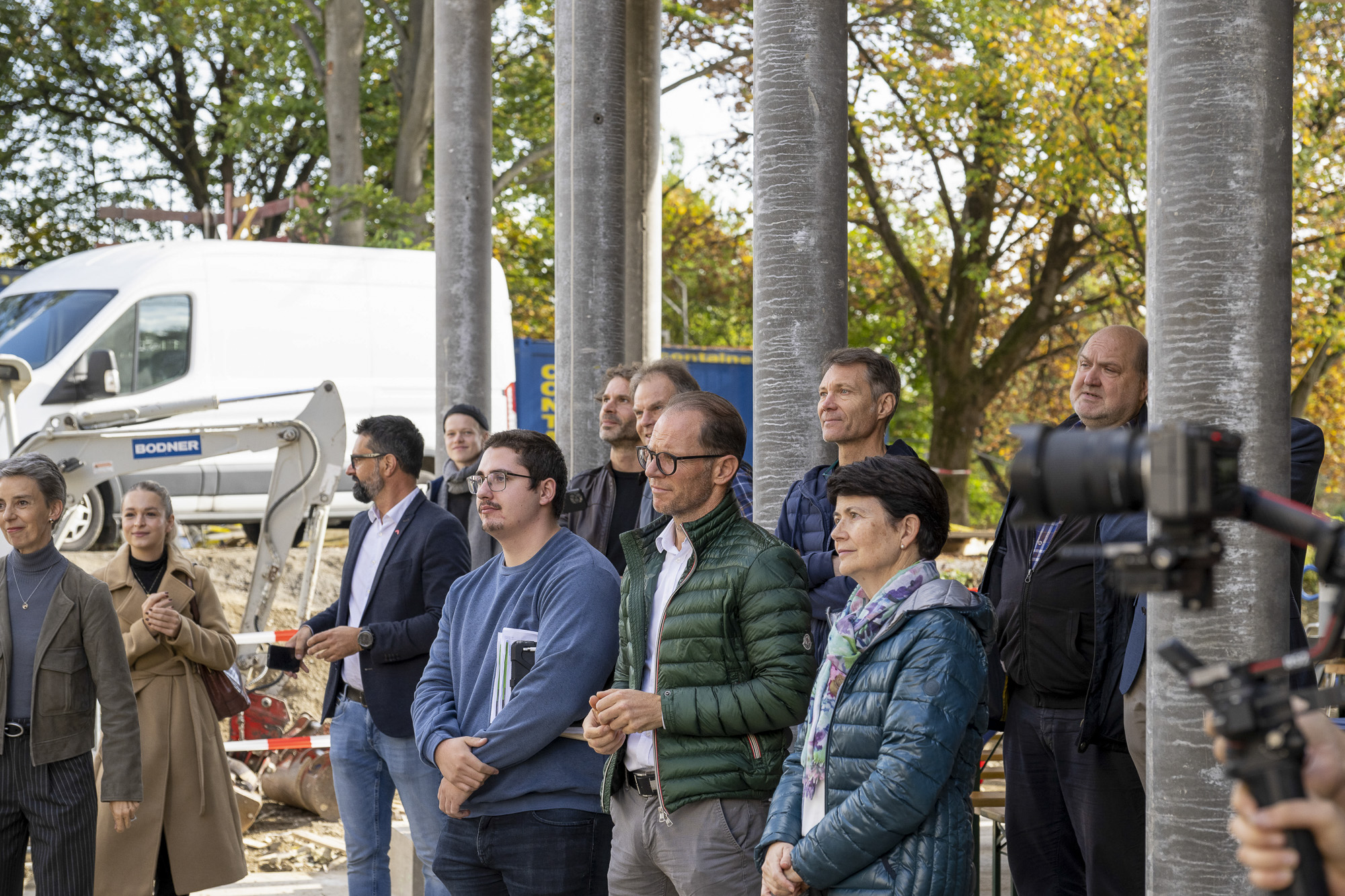 Bei der Firstfeier waren zahlreiche Projektpartner, Vertreter der beteiligten Firmen und Arbeiter vor Ort. Als Generalunternehmer zeichnet sich die Ing. Hans Bodner Bau GmbH & Co KG verantwortlich, die Planung erfolgt durch die beaufort Architekten ZT GmbH.