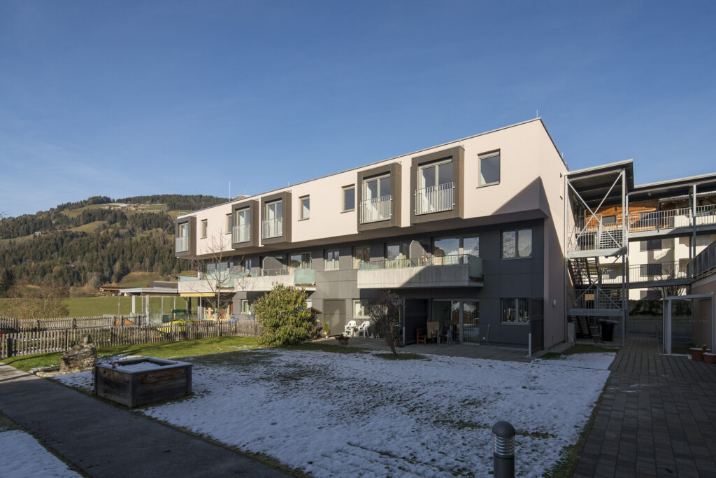 Die Wohnanlage besteht aus einem Baukörper mit 7 neuen und 7 bereits bestehenden betreubaren Wohnungen sowie bestehenden Räumlichkeiten für die Gemeinde Westendorf, in denen ein Eltern-Kind-Zentrum und ein dem benachbarten Wohn- und Pflegeheim zugeordnetes Tageszentrum untergebracht sind.