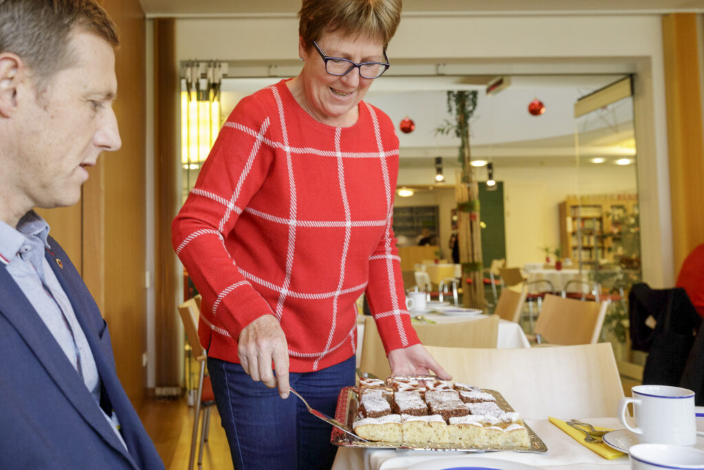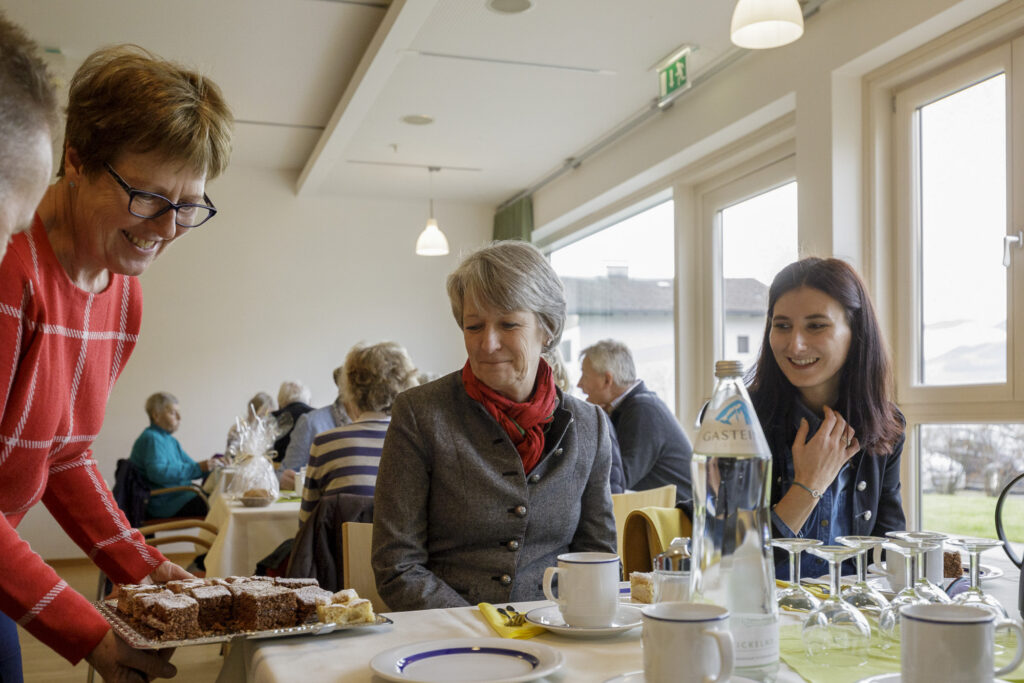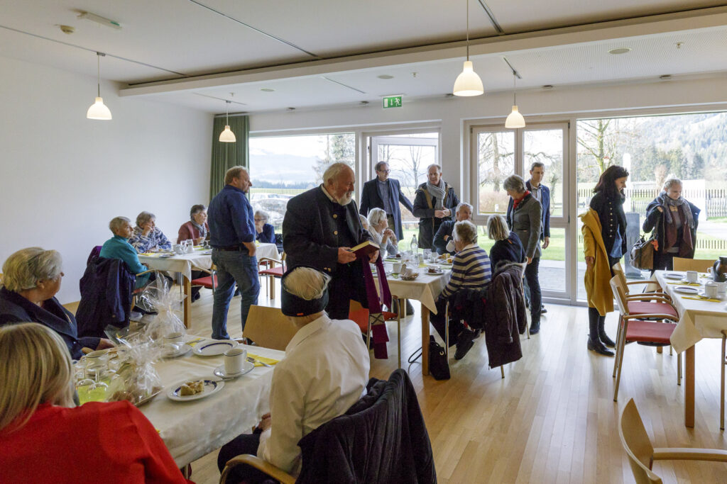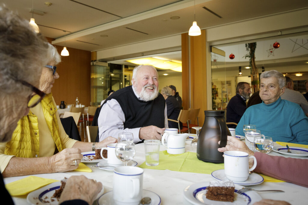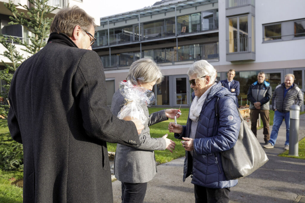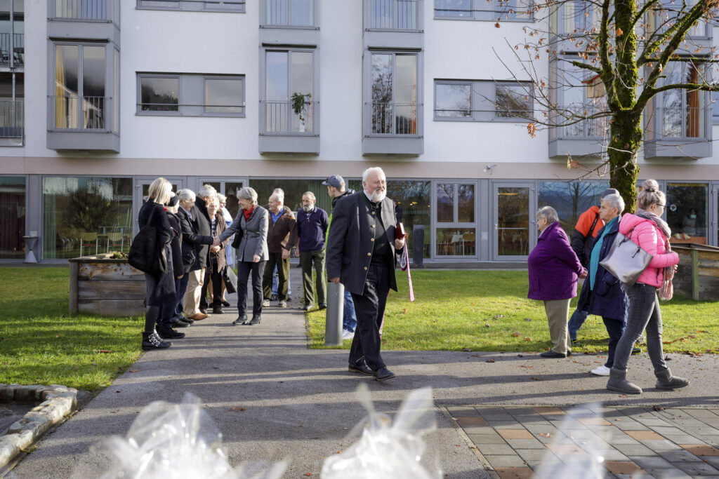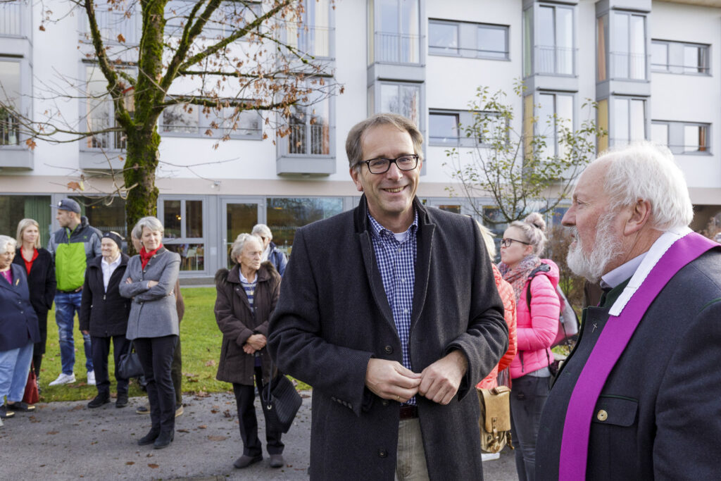 Der Baukörper wird durch ein Stiegenhaus und einen Personenaufzug erschlossen. Das Wohn- und Pflegeheim ist durch eine Brücke mit den neuen Wohnungen verbunden.