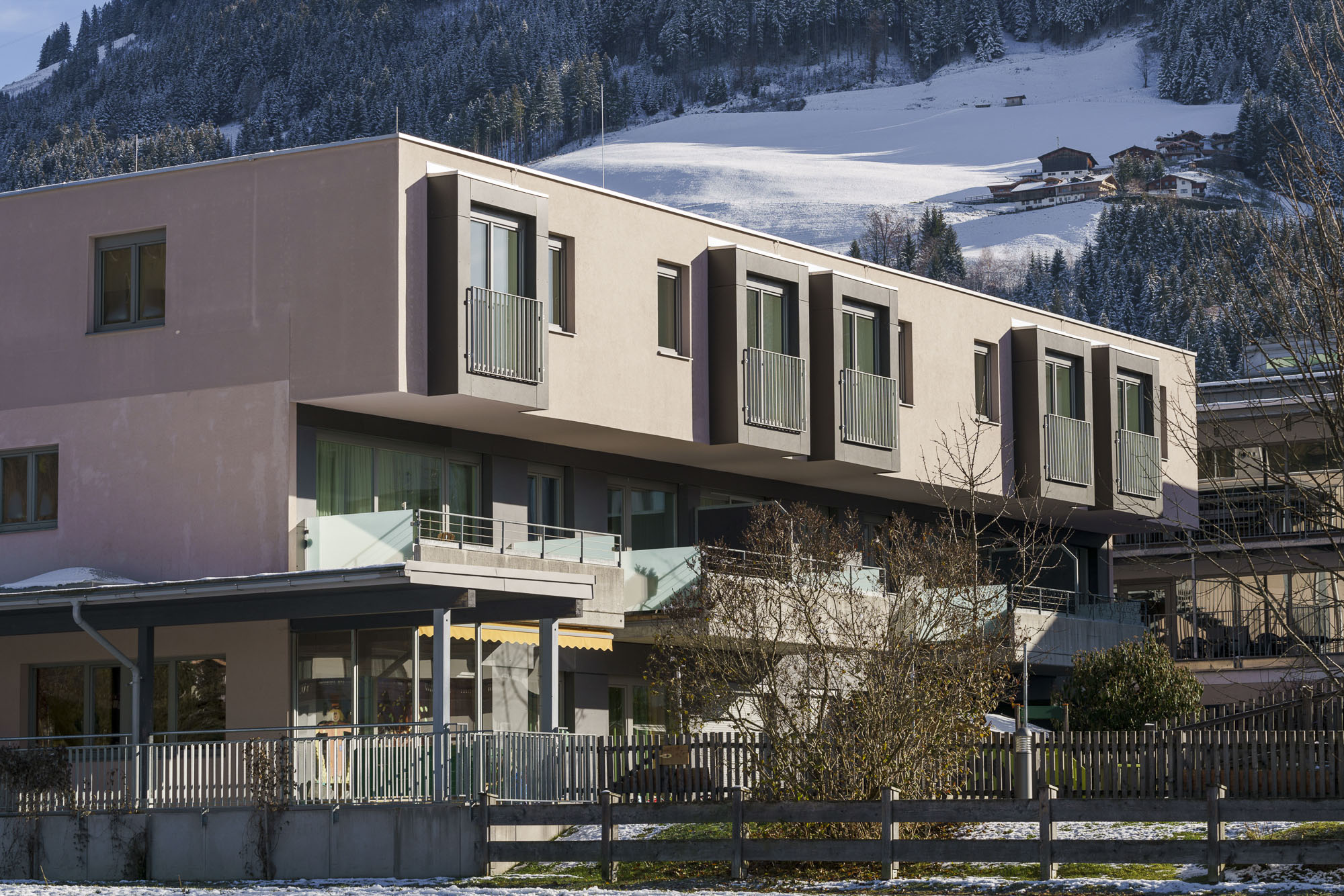 Die Wohnanlage besteht aus einem Baukörper mit 7 neuen und 7 bereits bestehenden betreubaren Wohnungen sowie bestehenden Räumlichkeiten für die Gemeinde Westendorf, in denen ein Eltern-Kind-Zentrum und ein dem benachbarten Wohn- und Pflegeheim zugeordnetes Tageszentrum untergebracht sind.