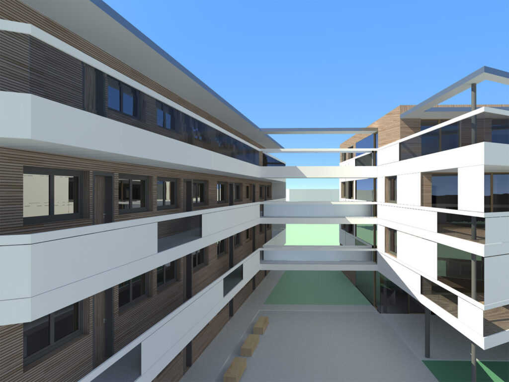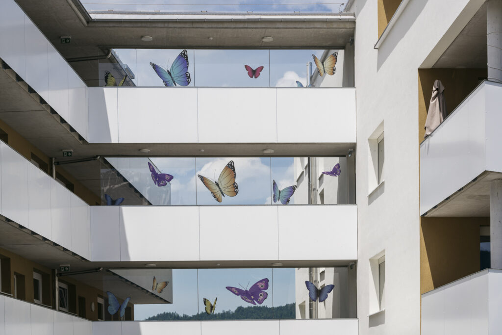 Die Wohnanlage besteht aus 2 Baukörpern, welche über ein Stiegenhaus mit Personenaufzug und Laubengängen miteinander verbunden sind. Jede Wohnung verfügt über eine Terrasse oder einen Balkon. Außerdem sind jeder Wohnungseinheit ein Tiefgaragenabstellplatz sowie ein Kellerabteil zugeordnet.