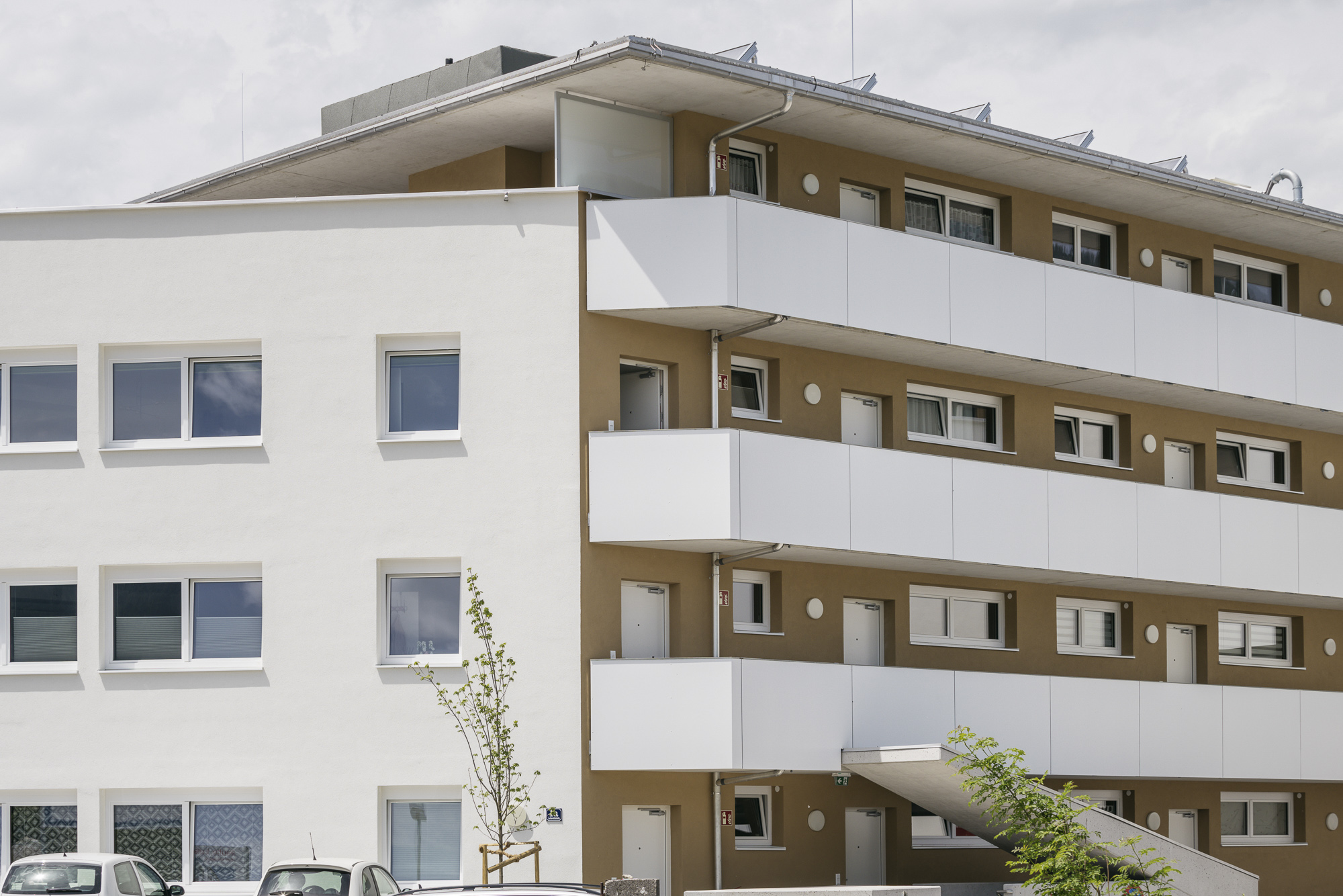 Die Wohnanlage besteht aus 2 Baukörpern, welche über ein Stiegenhaus mit Personenaufzug und Laubengängen miteinander verbunden sind. Jede Wohnung verfügt über eine Terrasse oder einen Balkon. Außerdem sind jeder Wohnungseinheit ein Tiefgaragenabstellplatz sowie ein Kellerabteil zugeordnet.