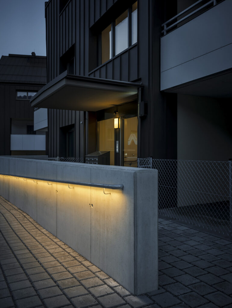 Die Wohnanlage besteht aus einem Baukörper, welcher durch zwei Stiegenhäuser und zwei Personenaufzüge erschlossen wird. Jeder Wohnungseinheit sind ein Balkon oder eine Terrasse, ein Autoabstellplatz sowie ein Kellerabteil zugeordnet.
