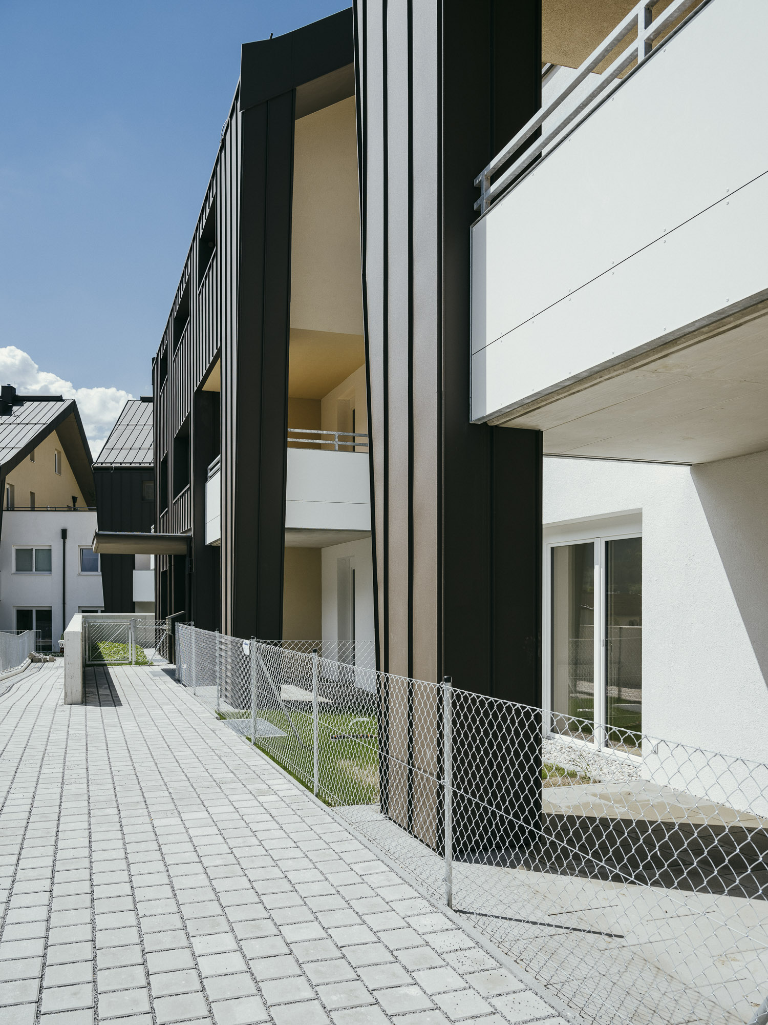 Die Wohnanlage besteht aus einem Baukörper, welcher durch zwei Stiegenhäuser und zwei Personenaufzüge erschlossen wird. Jeder Wohnungseinheit sind ein Balkon oder eine Terrasse, ein Autoabstellplatz sowie ein Kellerabteil zugeordnet.