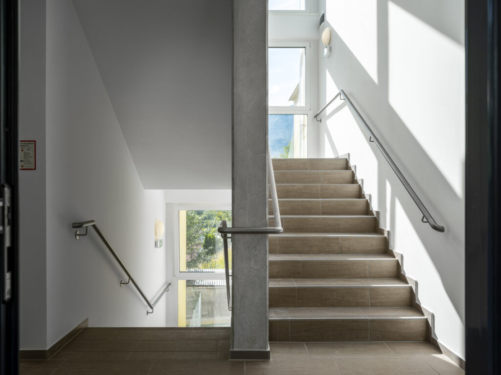 Die Wohnanlage besteht aus zwei Baukörpern, welche je durch ein Stiegenhaus und einen Personenaufzug erschlossen werden.