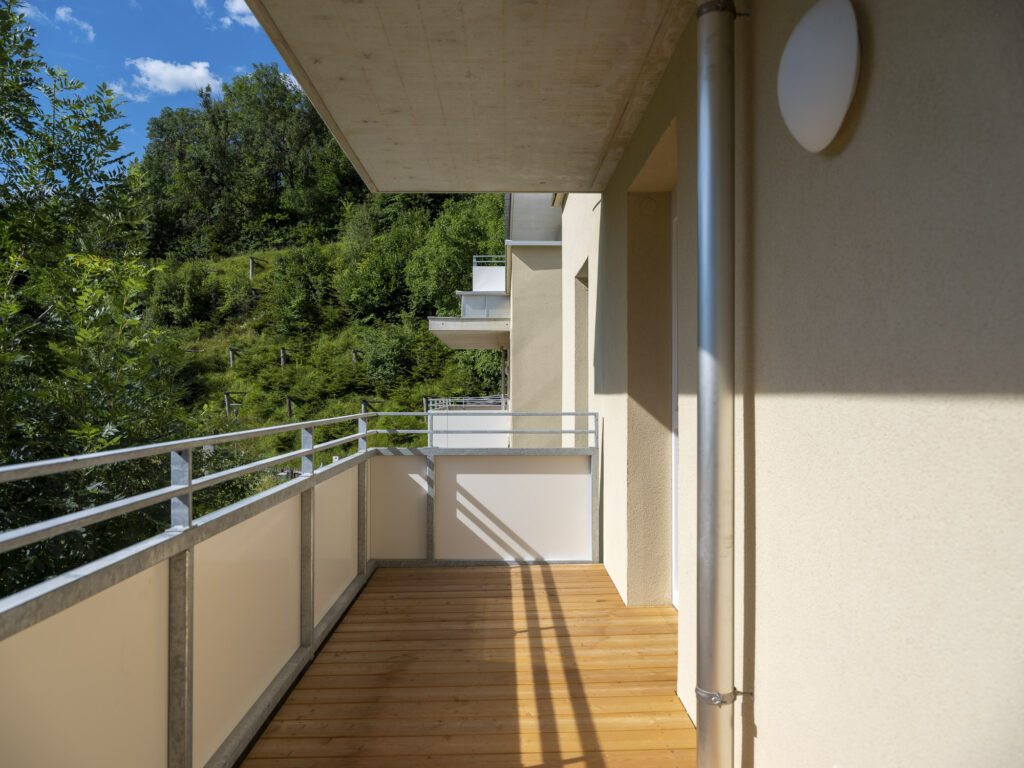 Jeder Wohnungseinheit sind ein Balkon oder eine Terrasse, ein Autoabstellplatz sowie ein Kellerabteil zugeordnet.