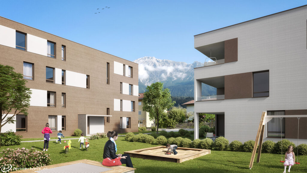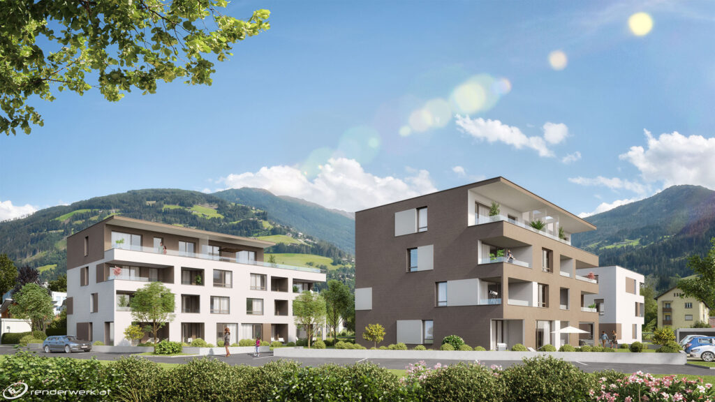 Unsere alten Gebäude in der Peter-Rosegger-Straße gehörten seit vielen Jahrzehnten zum Ortsbild von Wattens. Diese Jahre haben ihre Spuren hinterlassen. Deshalb haben wir uns dazu entschieden, die Anlage ab Herbst 2018 komplett neu aufzubauen. Dabei entstanden drei Baukörper: Mietwohnungen in Haus A und C, Eigentumswohnungen in Haus C. Jeder Wohnungseinheit sind ein Balkon oder eine Terrasse, ein Autoabstellplatz sowie ein Kellerabteil zugeordnet.