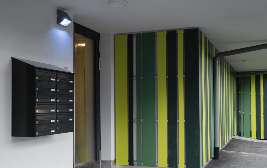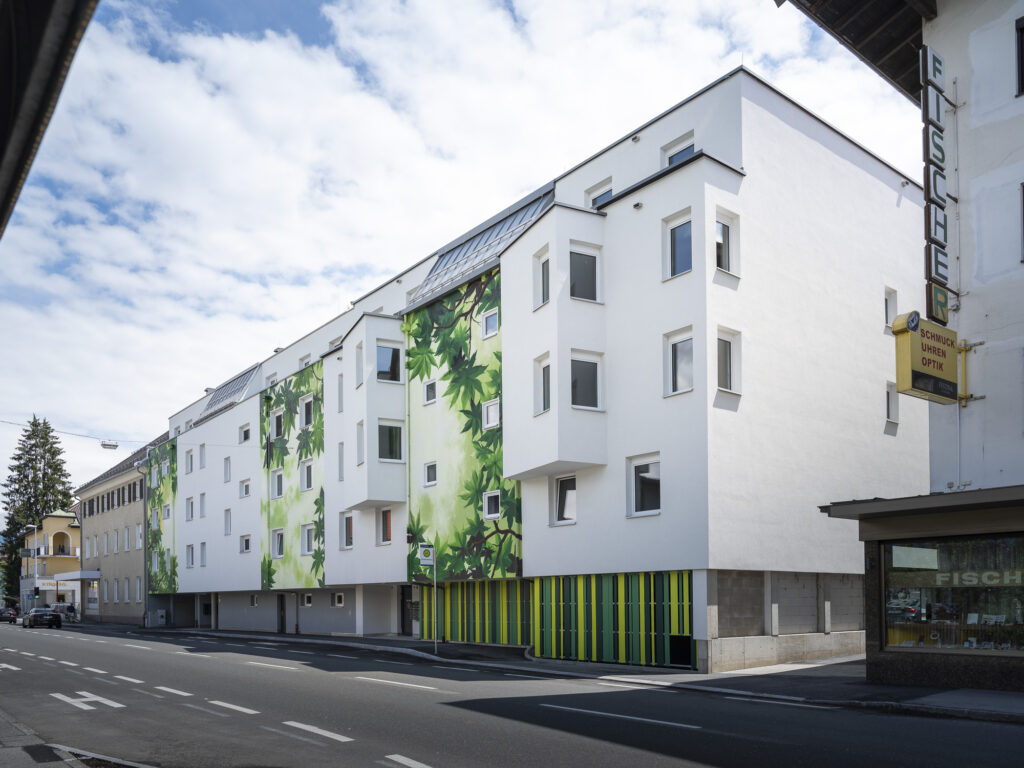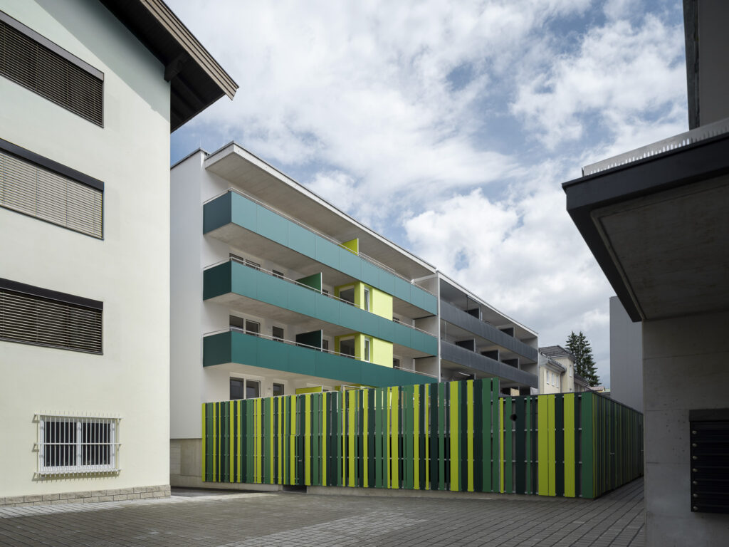 Die Wohnanlage besteht aus einem Baukörper, welcher durch ein Stiegenhaus und einen Personenaufzug erschlossen wird. Jeder Wohnungseinheit sind ein Balkon oder eine Terrasse, ein Autoabstellplatz sowie ein Kellerabteil zugeordnet.