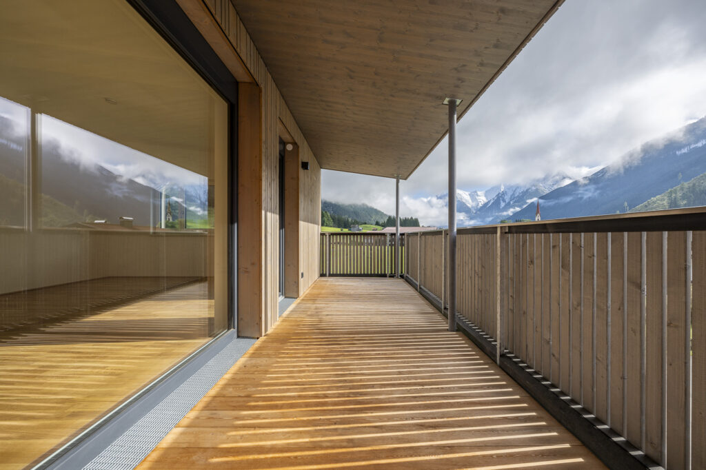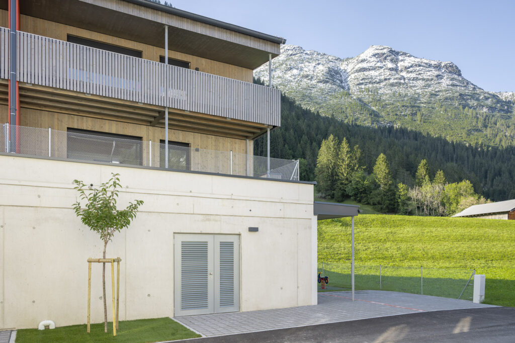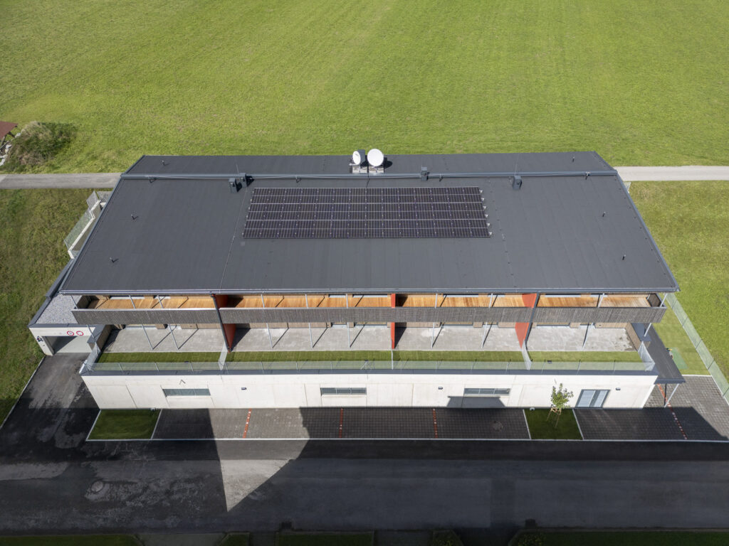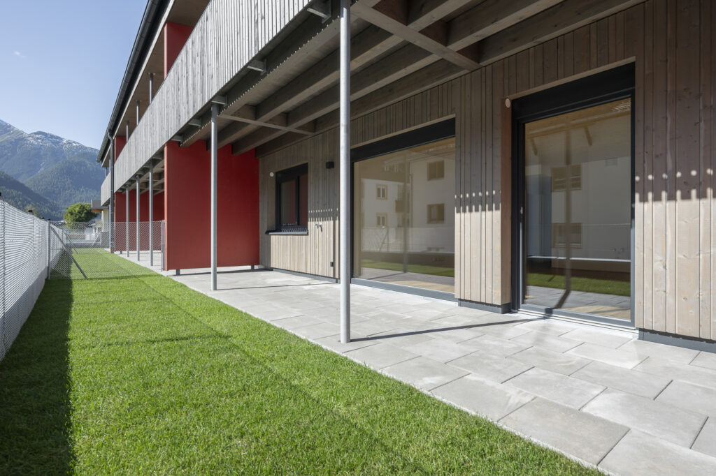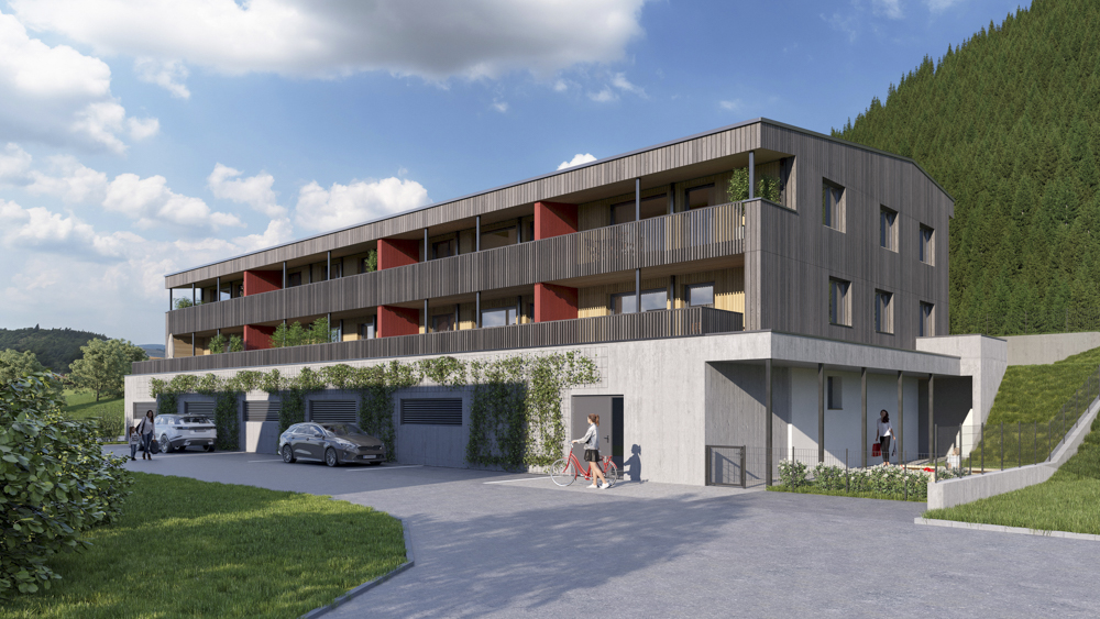 Die Wohnanlage besteht aus einem Baukörper, welcher durch ein Stiegenhaus und einem Personenaufzug erschlossen wird. Das Untergeschoß ist als Massivbau konzipiert, während ab dem Erdgeschoß ein Holzbau zur Ausführung kommen wird. Jeder Wohnungseinheit sind ein Balkon oder eine Terrasse, ein Autoabstellplatz sowie ein Kellerabteil zugeordnet.