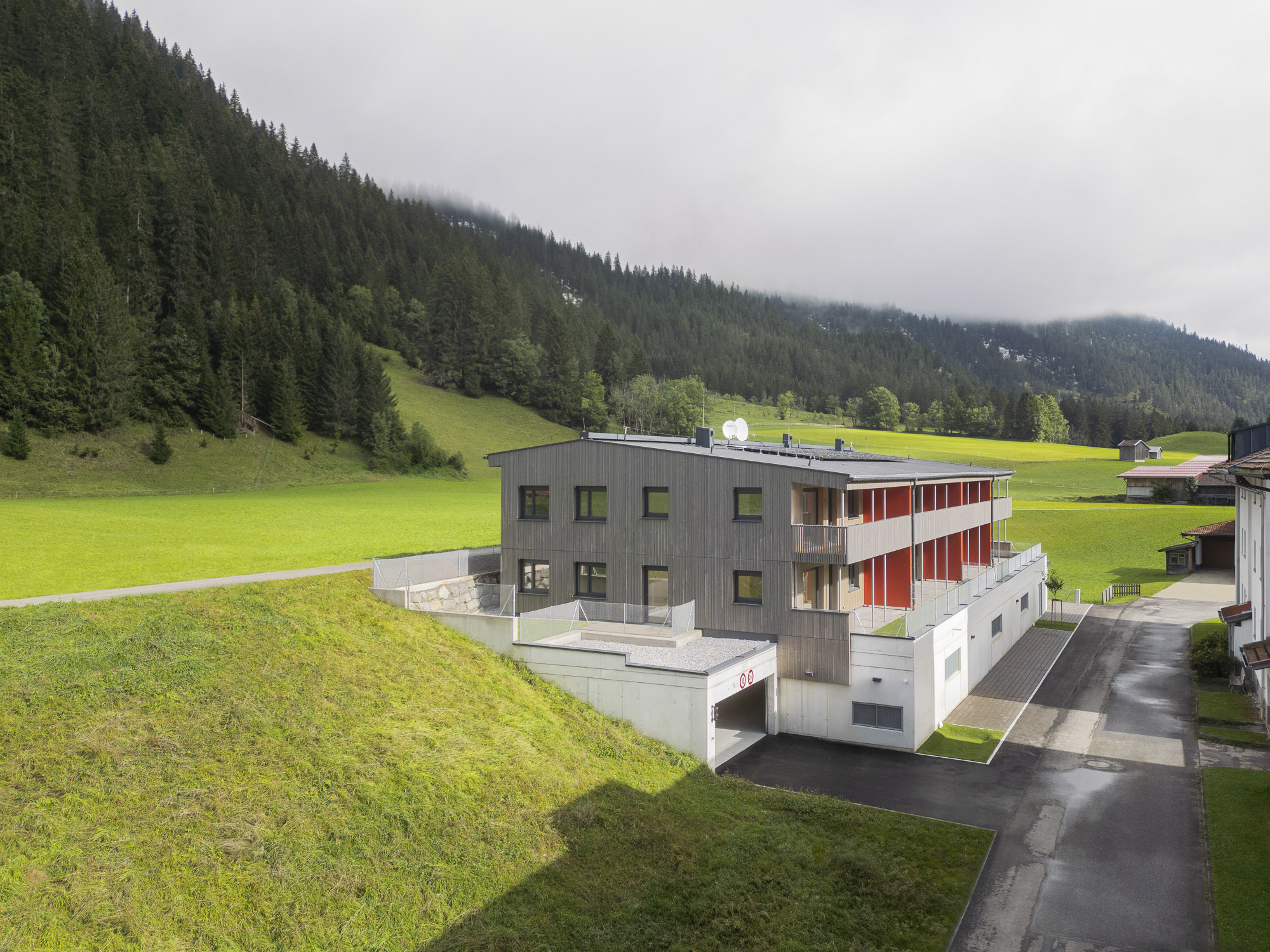 Die Wohnanlage besteht aus einem Baukörper, welcher durch ein Stiegenhaus und einem Personenaufzug erschlossen wird. Das Untergeschoß ist als Massivbau konzipiert, während ab dem Erdgeschoß ein Holzbau zur Ausführung kommen wird. Jeder Wohnungseinheit sind ein Balkon oder eine Terrasse, ein Autoabstellplatz sowie ein Kellerabteil zugeordnet.