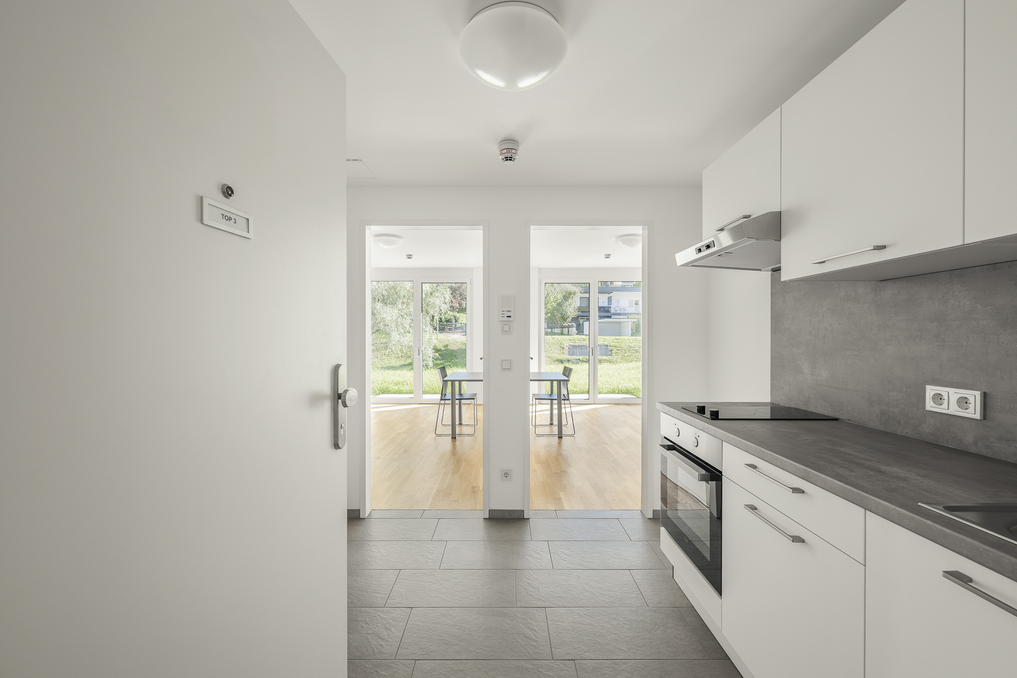 Es entstehen 31 freundlich und funktional gestaltete Zweizimmer-Wohnungen in einem optimierten Baukörper mit Satteldach in Massivbauweise. Einige Wohnungen verfügen über schöne Balkone oder Gartenflächen und ein Kellerabteil. Abstellflächen, wie etwa ein hauseigener Fahrradraum, ergänzen das Raumprogramm.
