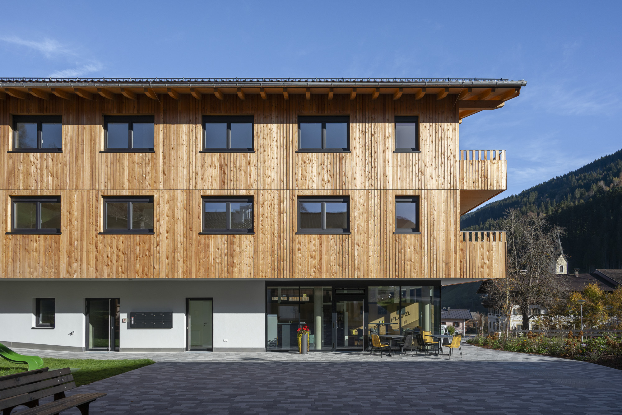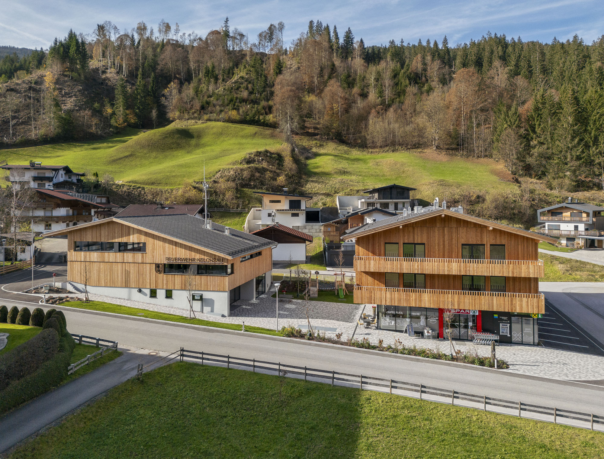 Zusätzlich zu den Wohnungen wurde ein Feuerwehrhauses errichtet. Zudem entstand ein Nahversorger, ein Bankomat und eine öffentliche Toilette.