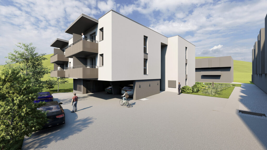 Die Wohnanlage besteht aus einem kompakten Baukörper, welcher über ein Stiegenhaus und mittels Personenaufzug erschlossen wird. Jede Wohnung verfügt über eine eigene Terrasse oder einen Balkon, zudem ist jeder Wohneinheit ein Kellerabteil zugeordnet. Insgesamt entstehen 18 betreubare Zweizimmerwohnungen sowie eine Mitarbeiterwohnung, unmittelbar neben dem angrenzenden Wohn- und Pflegeheim.