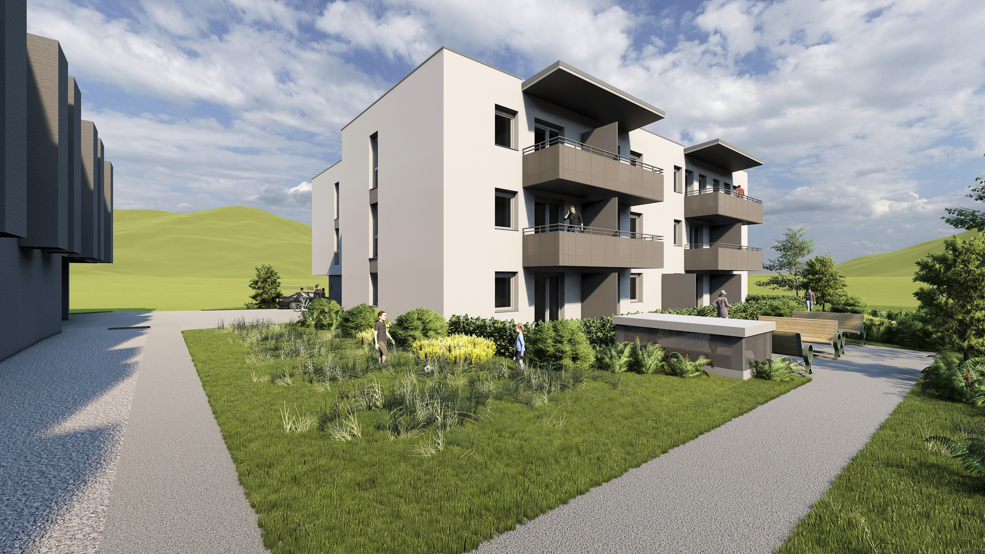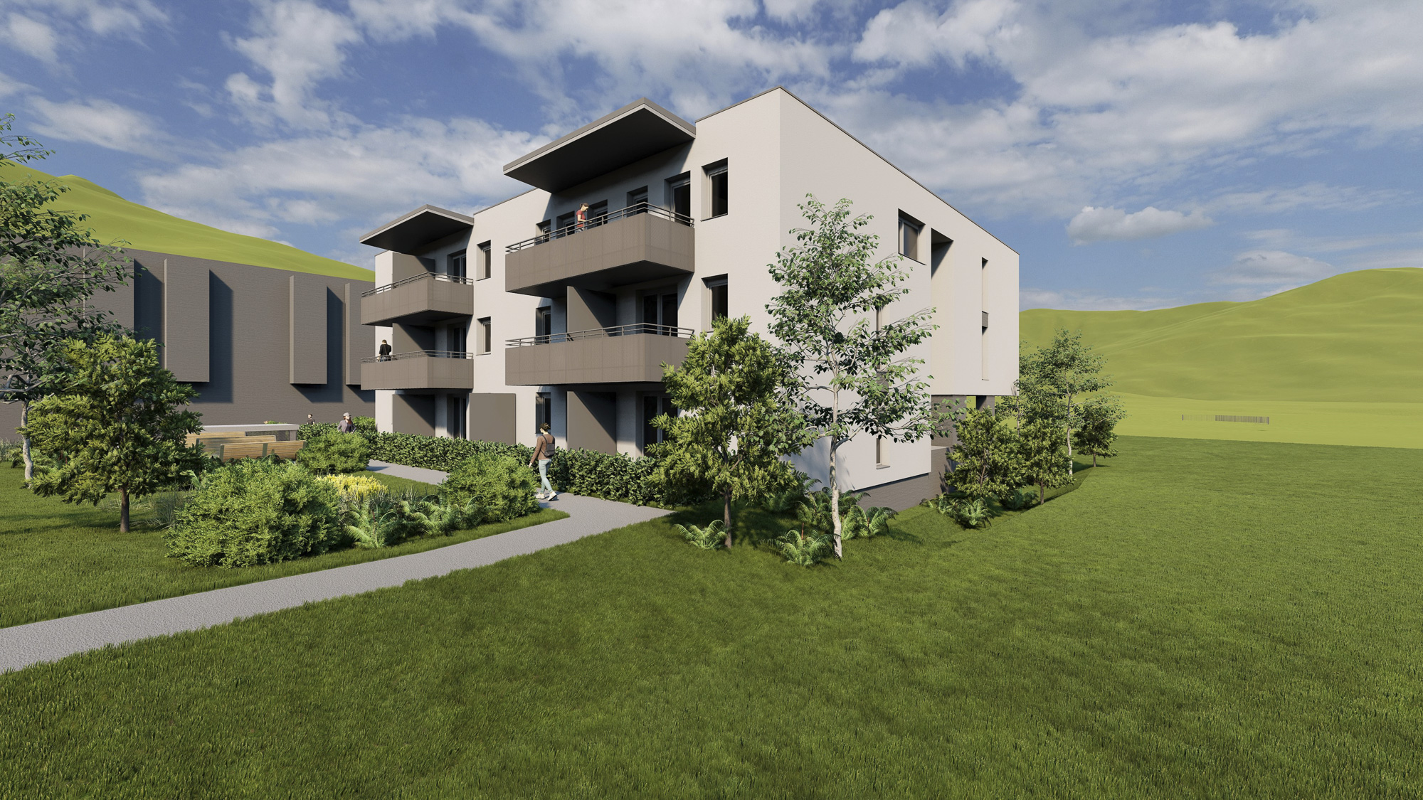 Die Wohnanlage besteht aus einem kompakten Baukörper, welcher über ein Stiegenhaus und mittels Personenaufzug erschlossen wird. Jede Wohnung verfügt über eine eigene Terrasse oder einen Balkon, zudem ist jeder Wohneinheit ein Kellerabteil zugeordnet. Insgesamt entstehen 18 betreubare Zweizimmerwohnungen sowie eine Mitarbeiterwohnung, unmittelbar neben dem angrenzenden Wohn- und Pflegeheim.