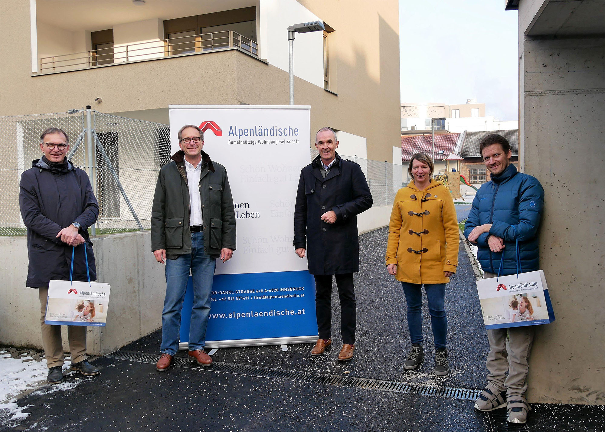 DI Markus Lechleitner, GF der Alpenländischen, lobte die angenehme Zusammenarbeit aller zuständigen Stellen, die sich für die Verwirklichung des wichtigen Bauvorhabens eingesetzt haben. Weiters wünschte er für die weitere Bauzeit einen unkomplizierten und unfallfreien Verlauf. Bürgermeister Thomas Oberbeirsteiner betonte die langjährige Tradition, die sich aus den erfolgreichen gemeinsamen Projekten mit der Alpenländischen, ergeben hat. Für Bürgermeister Oberbeirsteiner ist es begrüßenswert, dass zwei Wohnungen der Anlage adaptiert und an die Lebenshilfe vergeben werden. Für die Klienten wird die Möglichkeit auf begleitetes Wohnen geschaffen.