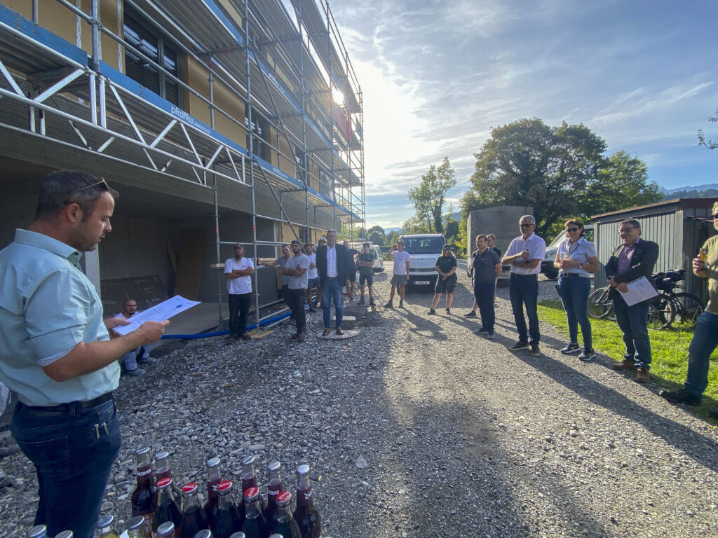 Bürgermeister Wolfgang Matt freut sich über den Baufortschritt: „Das Projekt nimmt zügig Form an und lässt bereits erkennen, wie schön der neue, geförderte Wohnraum für die künftigen Bewohner:innen werden wird.“