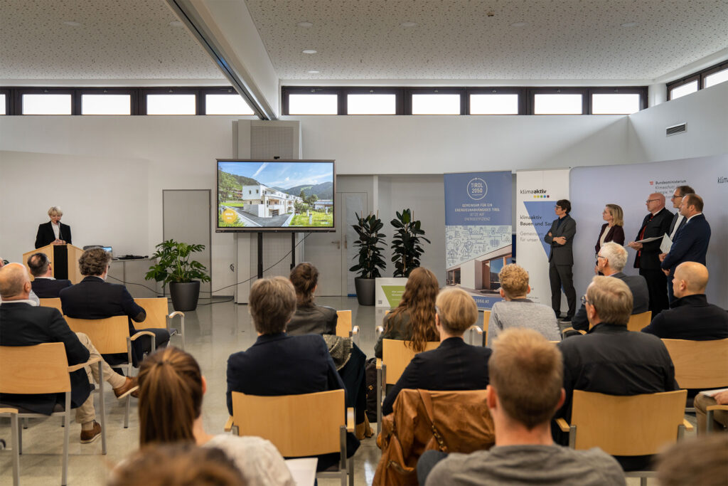 „Klimaaktiv Bauen und Sanieren“ ist eine Initiative des Klimaschutzministeriums. Seit 2004 wurden in Österreich über 1.120 Gebäude nach den Kriterien des klimaaktiv Gebäudestandards bewertet und deklariert. Etwa ein Drittel aller bislang deklarierten Gebäude kommen aus Tirol, wie Landeshauptmann-Stellvertreter Josef Geisler in seiner Ansprache hervorhob. Bei der diesjährigen Verleihung werden 35 Projekte mit „Gold“ ausgezeichnet, die in den Jahren 2020 und 2021 fertiggestellt wurden. Mehr als die Hälfte dieser höchst-prämierten Gebäude hat die Alpenländische errichtet.