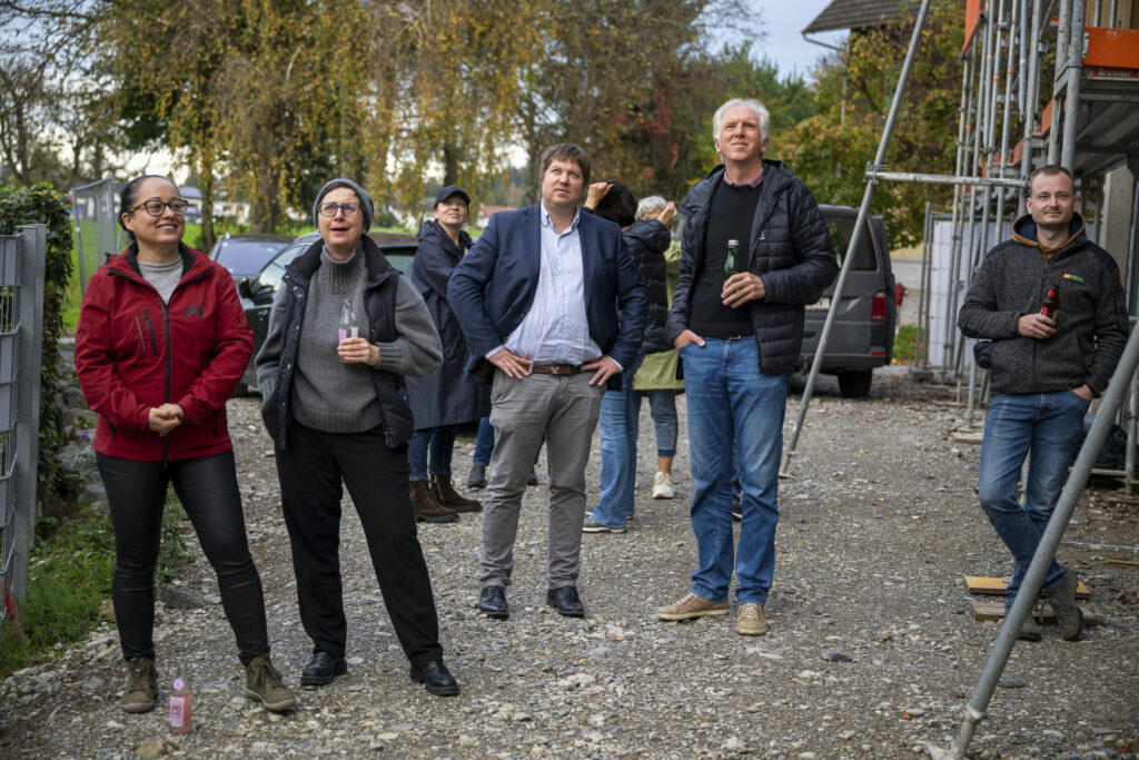 Harald Hutter, Teamleiter GU- Wohnbau, ergänzte zum Thema Nachhaltigkeit: „Die Wohnanlage hier in Hörbranz entspricht perfekt unserem Ansatz, Baumaterialien so einzusetzen, dass sie möglichst nachhaltig ihren Nutzen entfalten: Der Keller- ,Technik- und Fahrradraum sowie die überdachten Parkplätze sind aus Beton und Mauerwerk errichtet, der Laubengang zur Erschließung ist ein Stahlbau und die Wohnungen im Erd- sowie Obergeschoß sind in Holzbauweise ausgeführt. So sorgen wir für Ressourceneffizienz und Taxonomiekonformität.“