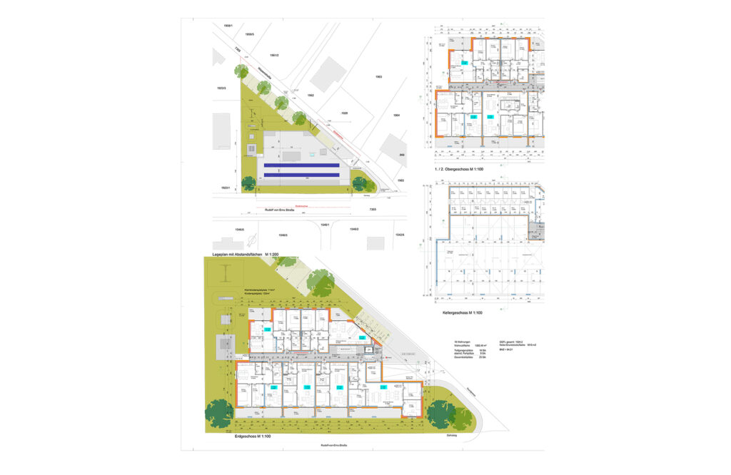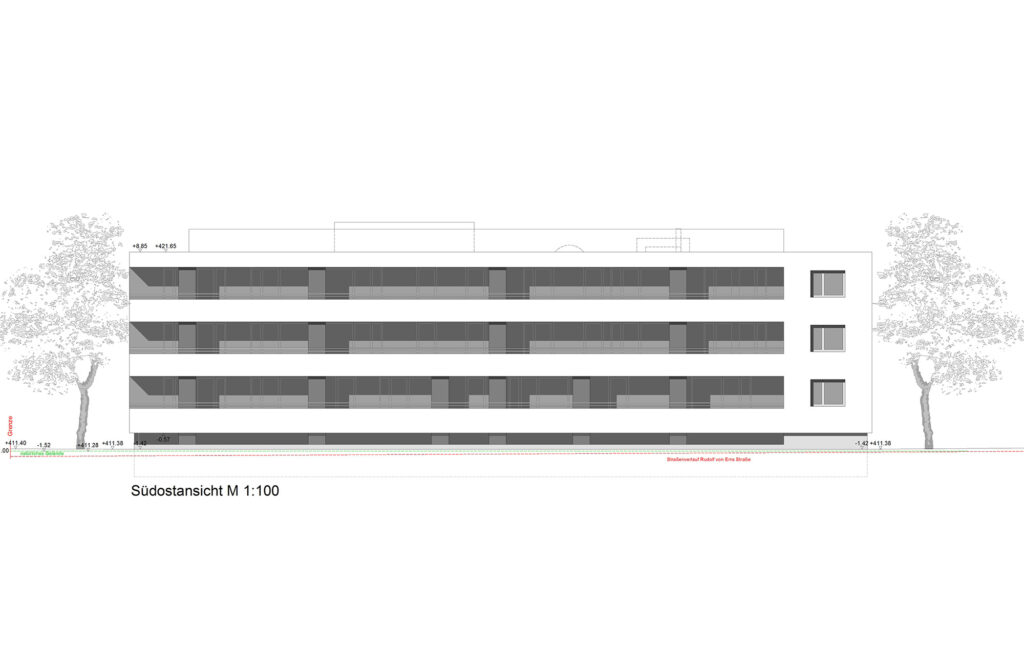 Bei der Wohnanlage handelt es sich um ein unterkellertes Gebäude mit Erdgeschoss und 2 Obergeschossen. Jede der Wohnungen verfügt über einen in die Fassade integrierten Balkon und im Untergeschoss über ein Kellerabteil.
