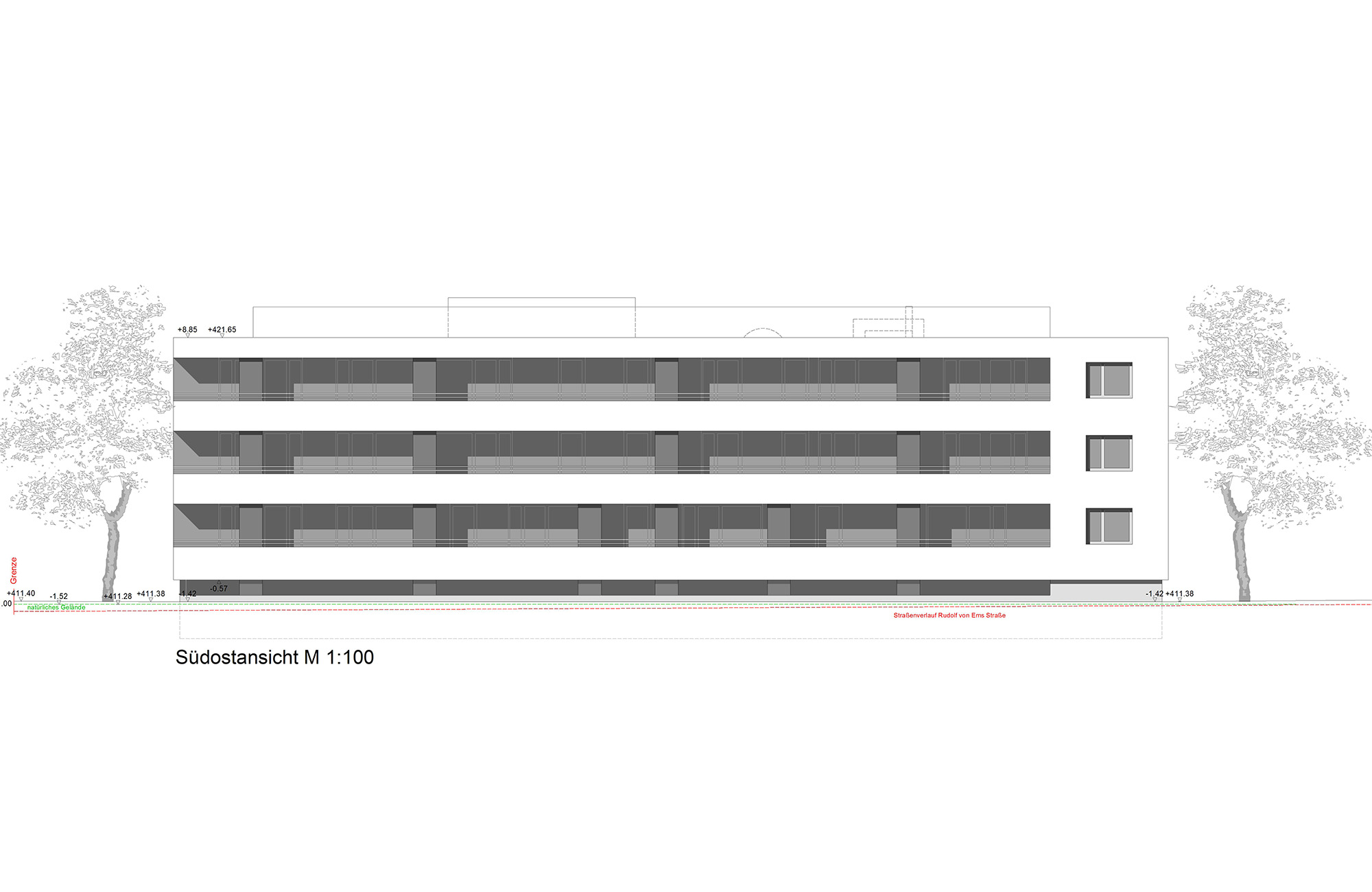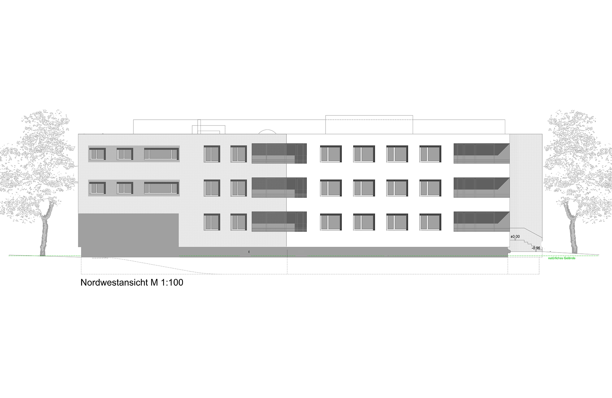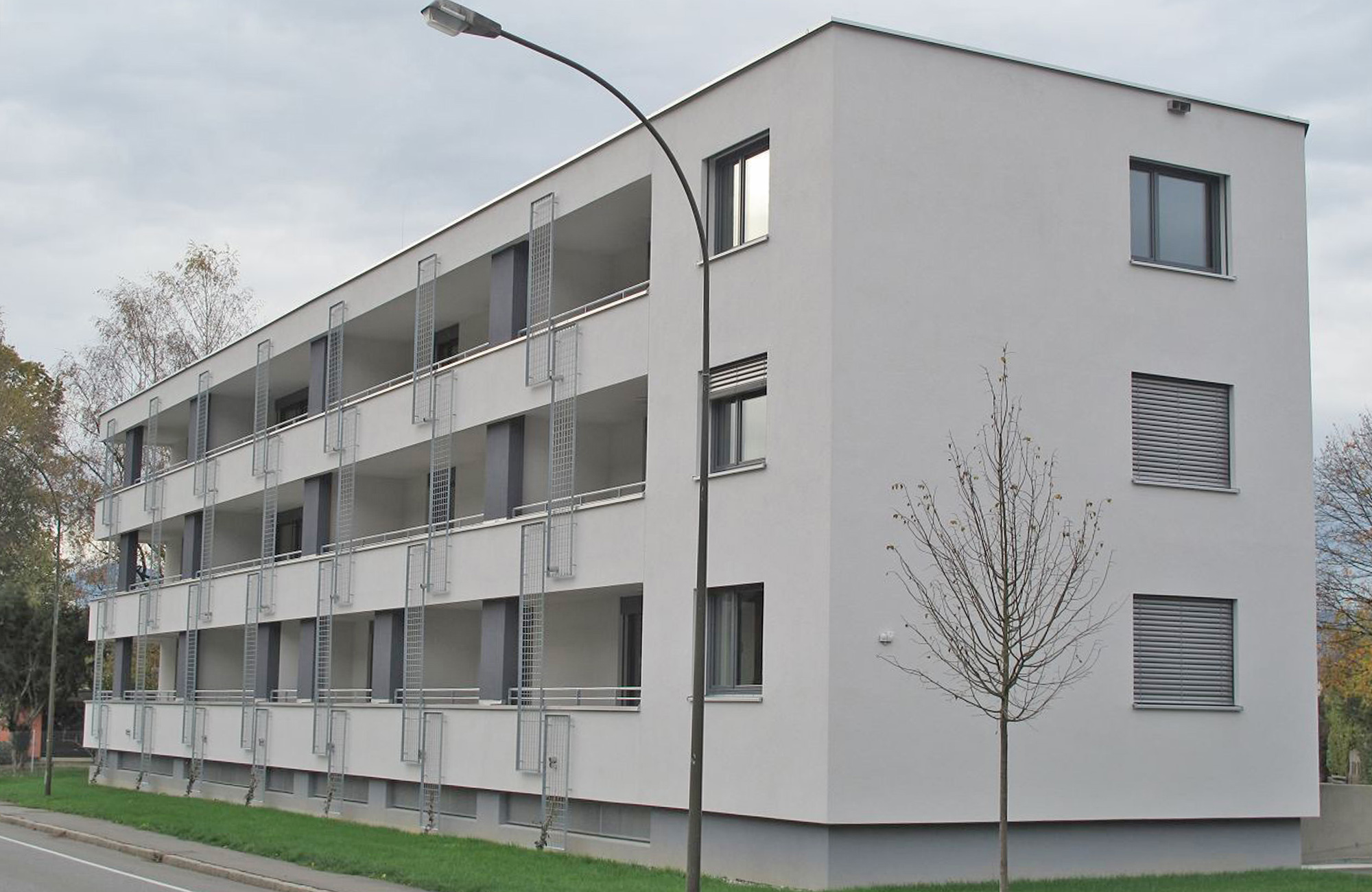 Bei der Wohnanlage handelt es sich um ein unterkellertes Gebäude mit Erdgeschoss und 2 Obergeschossen. Jede der Wohnungen verfügt über einen in die Fassade integrierten Balkon und im Untergeschoss über ein Kellerabteil.