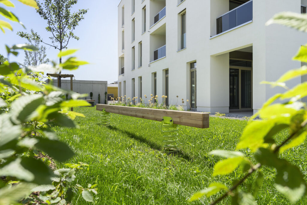 Die Wohnanlage besteht aus einem Gebäude mit 18 Wohneinheiten, einer Geschäftsfläche, 20 Tiefgaragenplätzen und 12 KFZ-Abstellplätzen im Freien. Jede Wohnung verfügt über eine Terrasse oder eine Loggia. Außerdem sind jeder Wohnungseinheit ein Tiefgaragenabstellplatz sowie ein Kellerabteil zugeordnet.