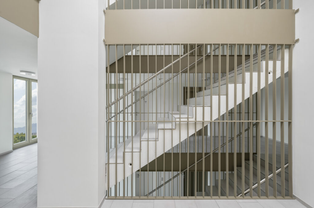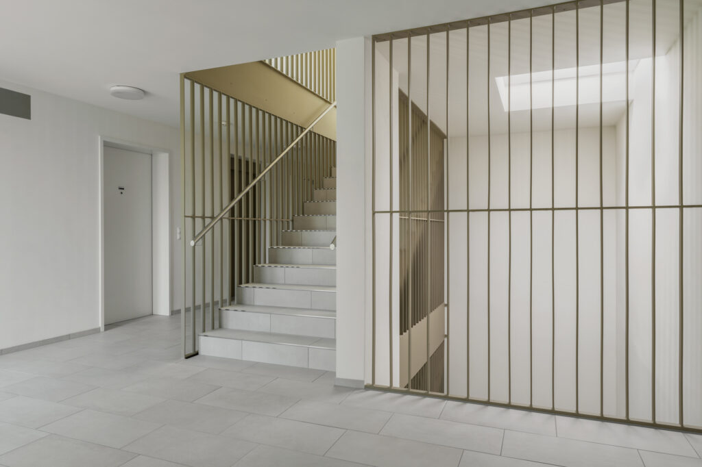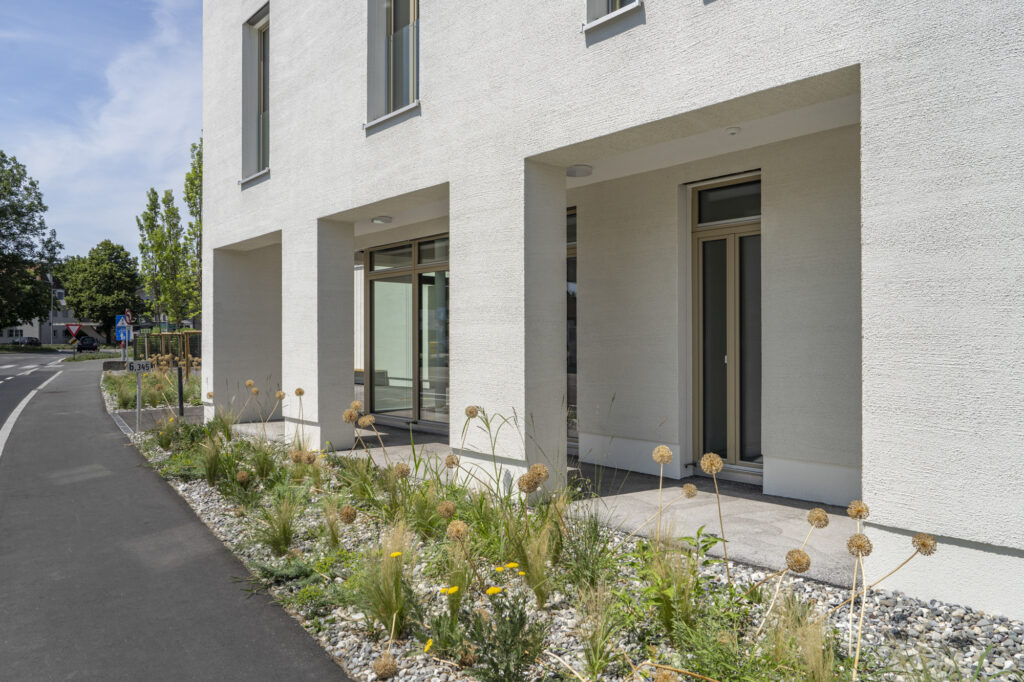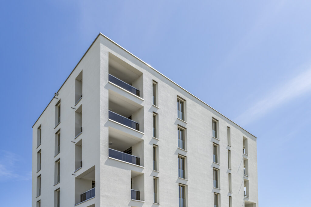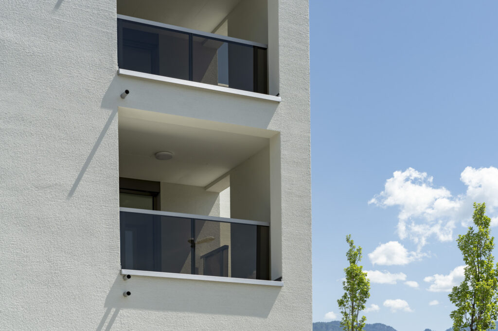 Das Projekt verfügt über ein Erdgeschoss und 3 bzw. 5 Obergeschosse in Massivbauweise mit einem bekiesten Flachdach. Die den Wohnungen zugehörigen Loggien sind in die Gebäudekubatur integriert.