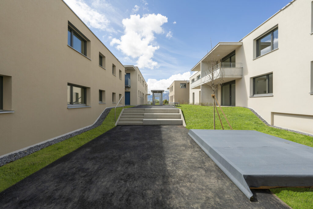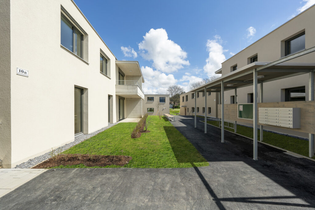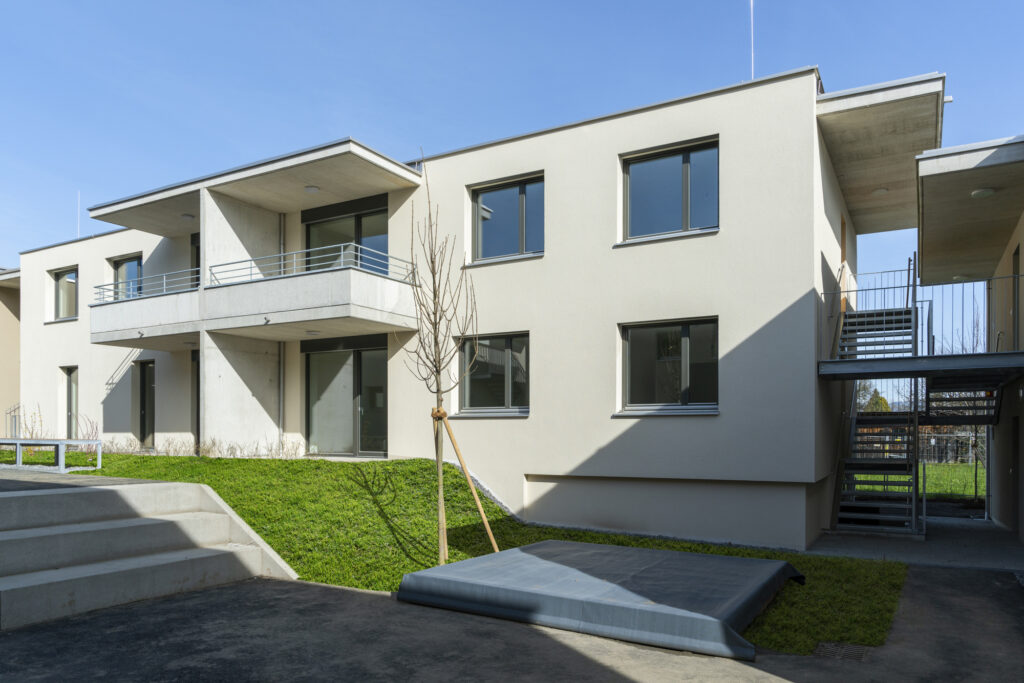 Die Wohnanlage besteht aus fünf Gebäude mit 18 Wohneinheiten, 18 Tiefgaragenplätzen und sechs KFZ-Abstellplätzen im Freien. Das Projekt ist teilunterkellert, wobei von den insgesamt 5 Häusern, lediglich 3 unterkellert sind. Jedes der Häuser verfügt über ein Erdgeschoss und ein Obergeschoss in Massivbauweise mit jeweils bekiesten Flachdach. Die den Wohnungen zugehörigen Terrassen oder Balkone sind in die Gebäudekubatur integriert oder kragen aus.