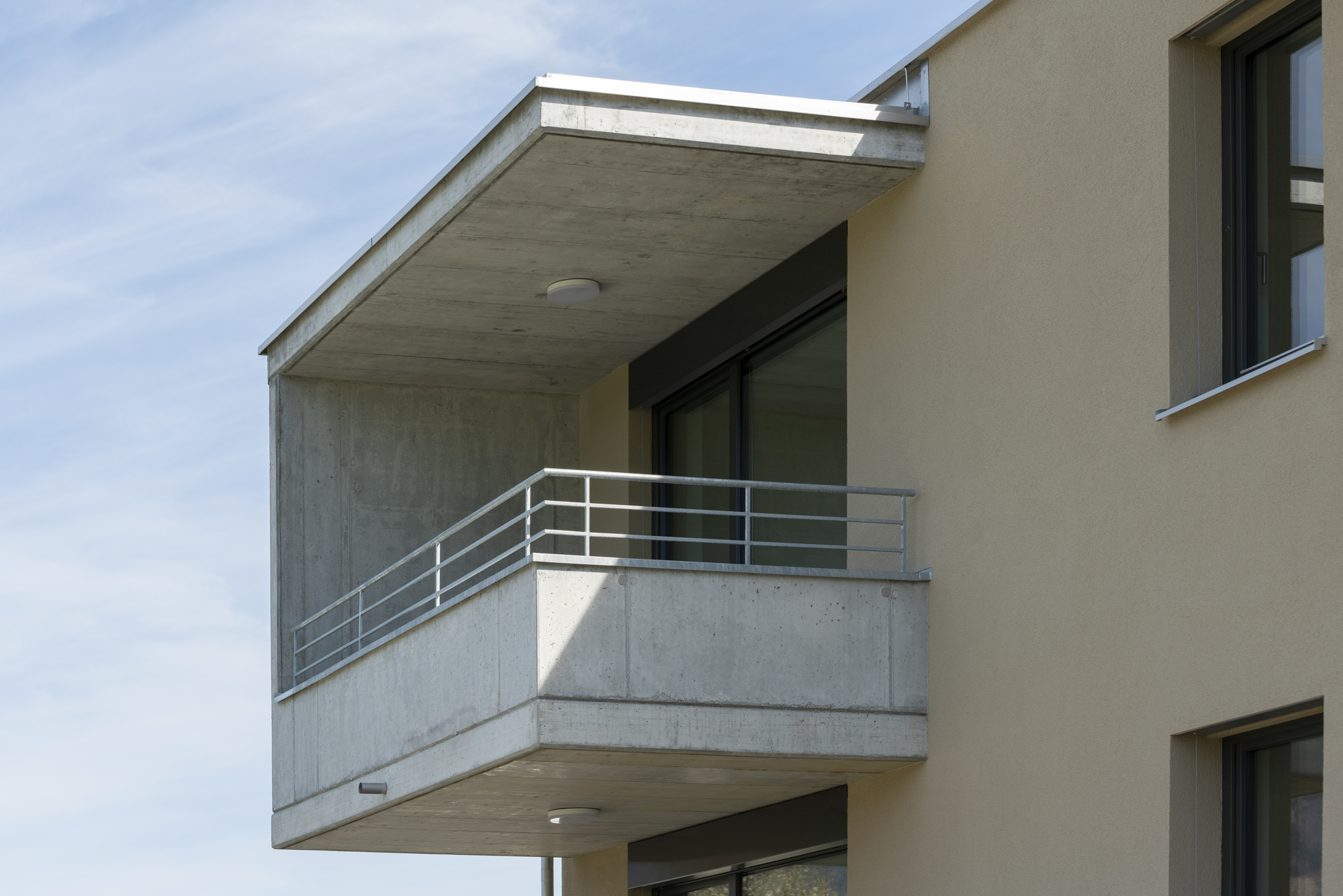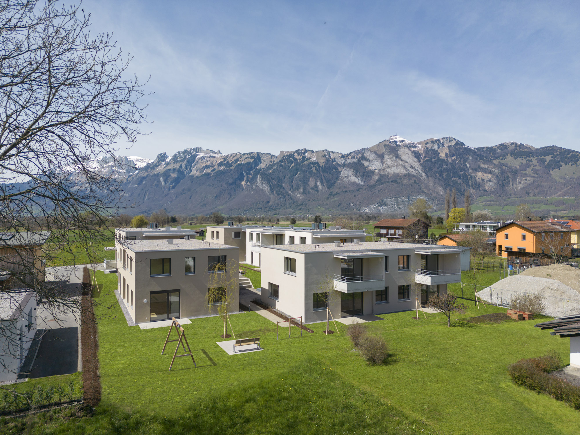 Die Wohnanlage besteht aus fünf Gebäude mit 18 Wohneinheiten, 18 Tiefgaragenplätzen und sechs KFZ-Abstellplätzen im Freien. Das Projekt ist teilunterkellert, wobei von den insgesamt 5 Häusern, lediglich 3 unterkellert sind. Jedes der Häuser verfügt über ein Erdgeschoss und ein Obergeschoss in Massivbauweise mit jeweils bekiesten Flachdach. Die den Wohnungen zugehörigen Terrassen oder Balkone sind in die Gebäudekubatur integriert oder kragen aus.