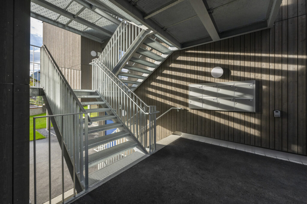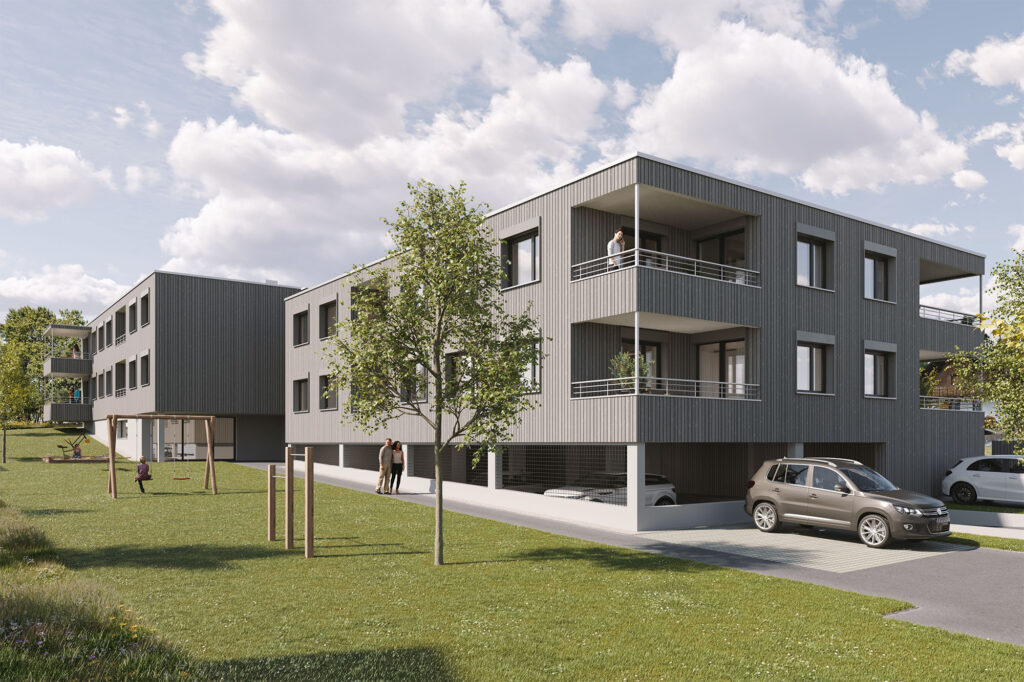 Die Wohnanlage besteht aus zwei Baukörper, welche jeweils durch ein offenes Stiegenhaus und einem Personenaufzug erschlossen werden. Das Untergeschoß ist als Massivbau konzipiert, während ab dem Erdgeschoß ein Holzbau zur Ausführung kommen wird. Jeder Wohnungseinheit sind ein Balkon bzw. eine Loggia, ein Autoabstellplatz sowie ein Kellerabteil zugeordnet.