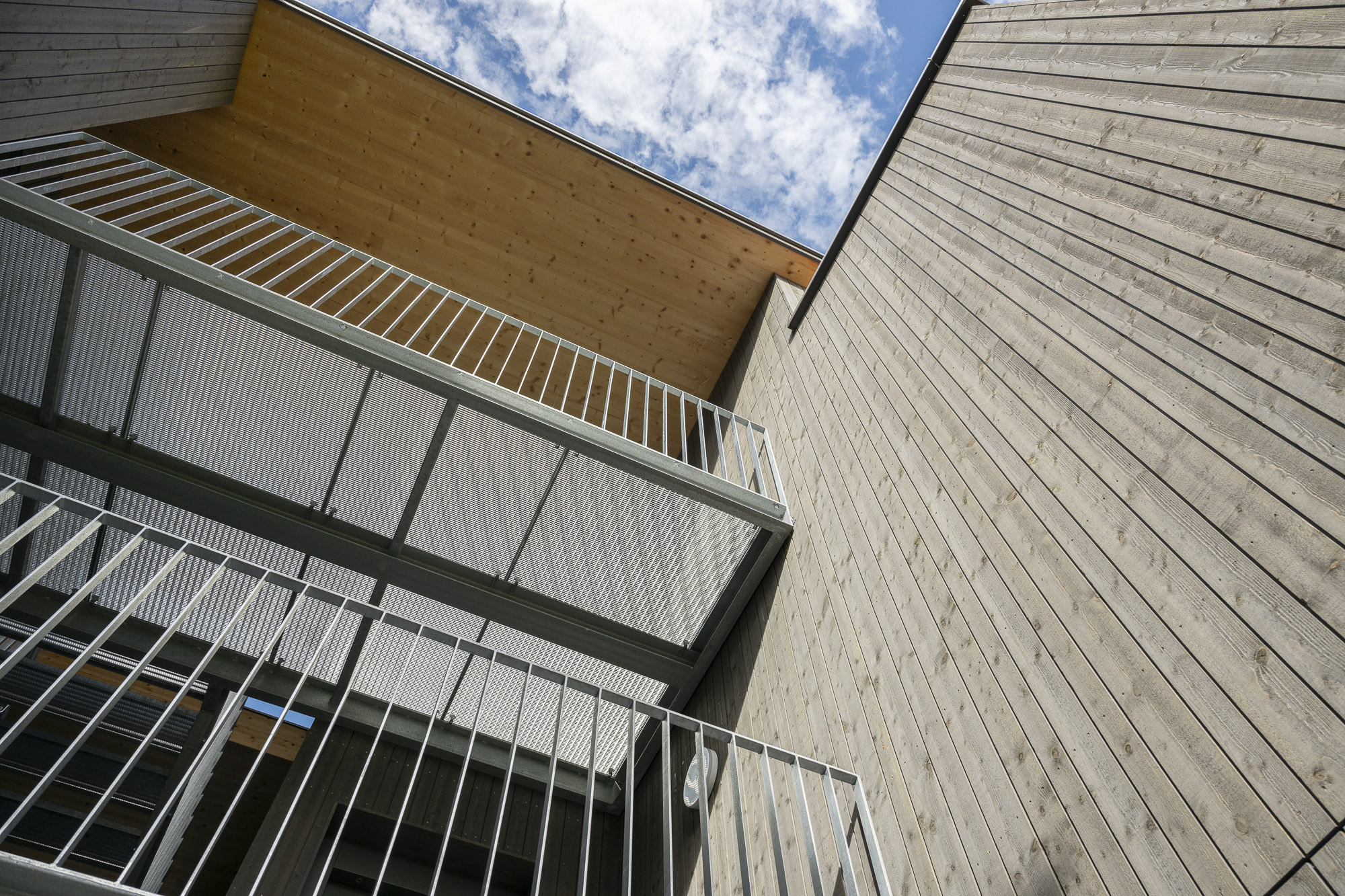 Die Wohnanlage besteht aus zwei Baukörper, welche jeweils durch ein offenes Stiegenhaus und einem Personenaufzug erschlossen werden. Das Untergeschoß ist als Massivbau konzipiert, während ab dem Erdgeschoß ein Holzbau zur Ausführung kommen wird. Jeder Wohnungseinheit sind ein Balkon bzw. eine Loggia, ein Autoabstellplatz sowie ein Kellerabteil zugeordnet.